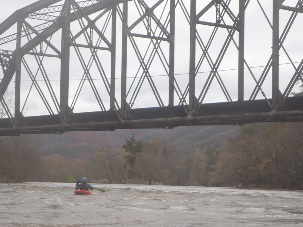 Put-in: Get back out to US-70 and continue east away from Hot Springs. In 4.7 miles, you will cross Big Laurel. The gauge is on this bridge. But the café asks that you don't park as river access. Instead, turn right to stay on US-70 and park 200 yards later on the right. There is a trail that heads down river and hits the river in 200 yards.
