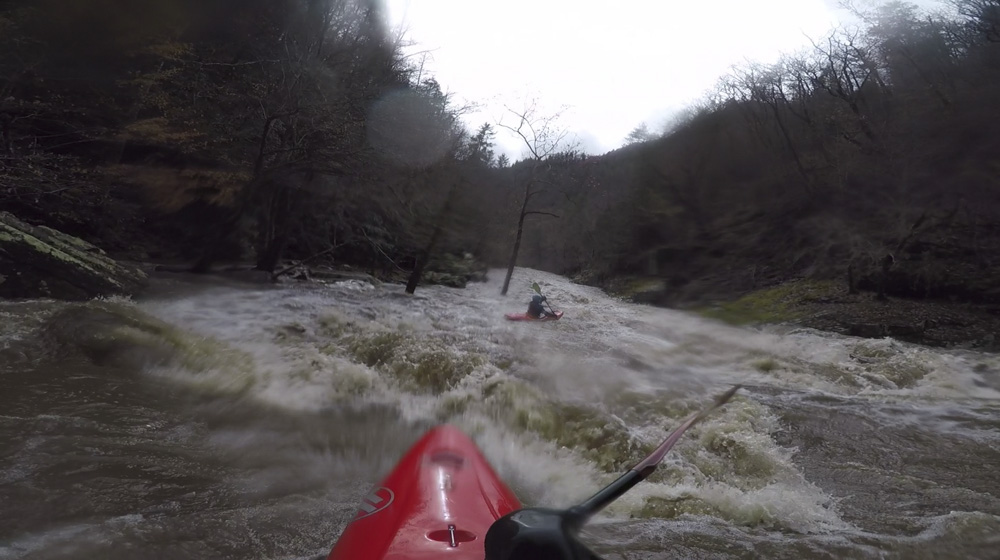 - Small Drop (II+). One last drop is formed by a shallow shelf that slides into a river wide reactionary. It isn't a big deal but looks sorta intimidating from above at the high flow.