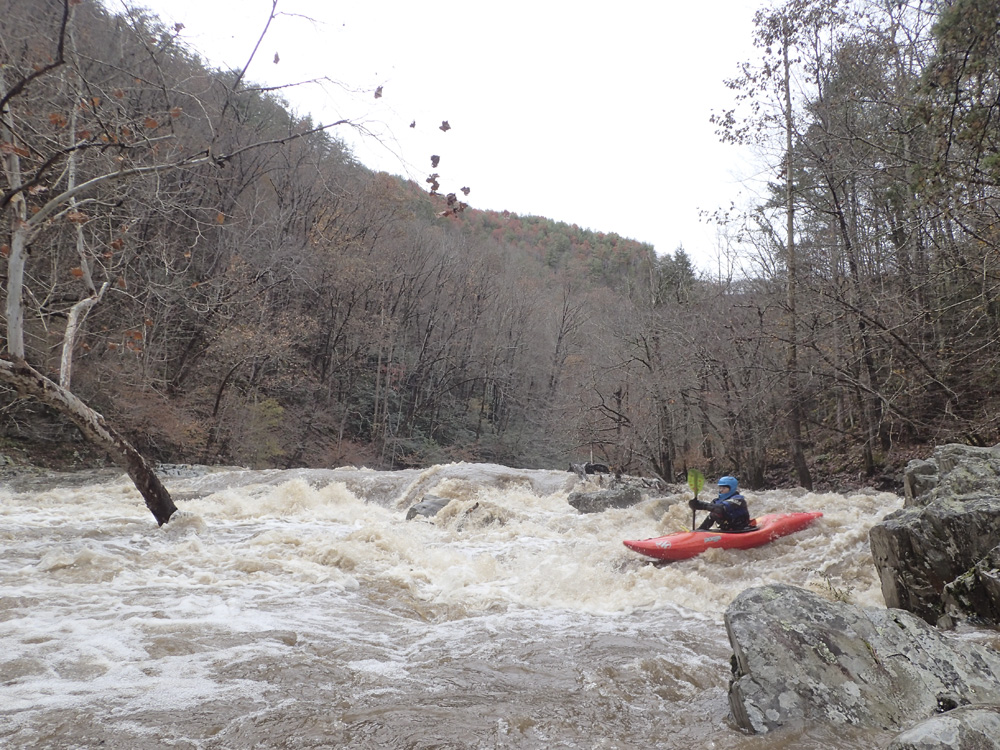 After our morning lap on Brush Creek, we headed back over to Big Laurel Creek and found that the water had risen 0.7 feet to 2.7 feet. For the average Big Laurel user, this flow would be considered high and for many, too high. But, the run is only class III to IV-, so, friends of ours have raved about the high flow experience on the run, so we were stoked to see it bump up and quickly set our shuttle.