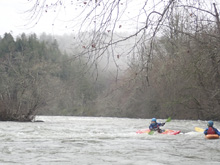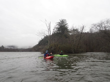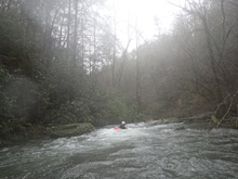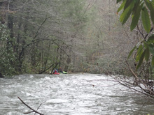 Forth Rapid (IV). Immediately downstream, was wood blocking 75% of the river, but having a small opening on the left. We went down the left and boofed through this rock infested rapid. It is by far the least clean. Part of the rating is that the next rapid has an ugly rock in it that I wouldn't want to swim into.