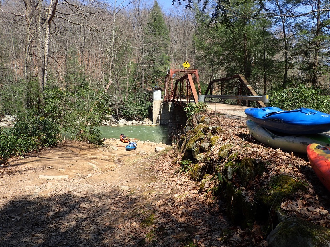 Take-out and Put-in: You need at least a Highlander / Outback or equivalent as the road to put-in and take-out is very rocky and requires some clearance. 15 miles East of Morgantown WV on Highway 68, take exit 23 for WV-26. Head south for 1.8 miles before turning right on Pleasant Valley Rd. In 1.2 miles veer right onto Co Rte 14/3 and continue for 0.4 miles before it turns into Little Sandy Rd and continue for an additional 0.4 miles before it then changes names to be Shawhill Rd. (Just stay straight). In 1.9 miles you will pass a dirt road turning sharply back up that parallels a creek down to put-in. But first, getting to take-out... rather than turning continue straight for another quarter mile to the T, turn left. Then in 0.6 miles turn right at the fork onto Bull Run Rd. The road then degrades for 3.5 miles to the large parking area at the bridge.