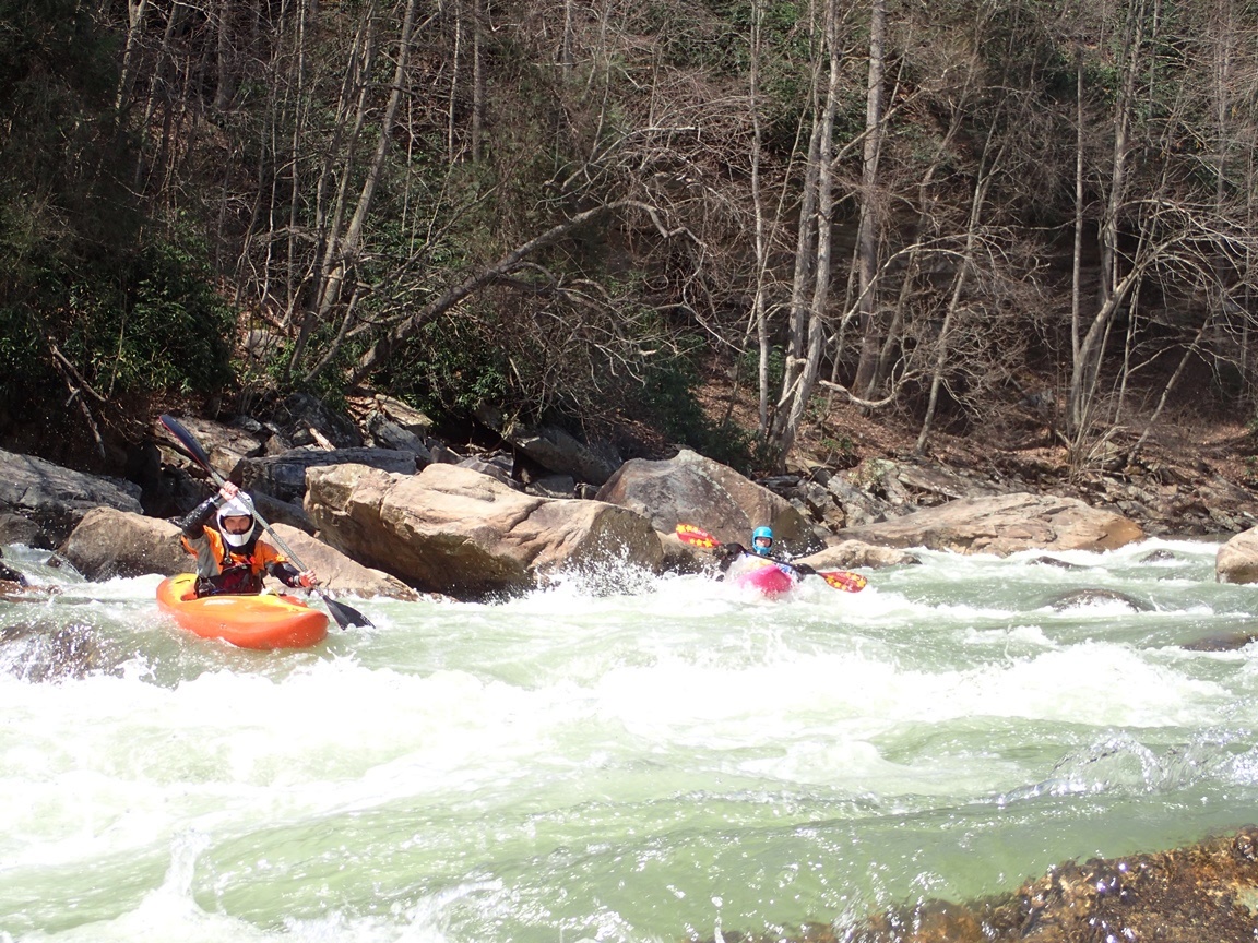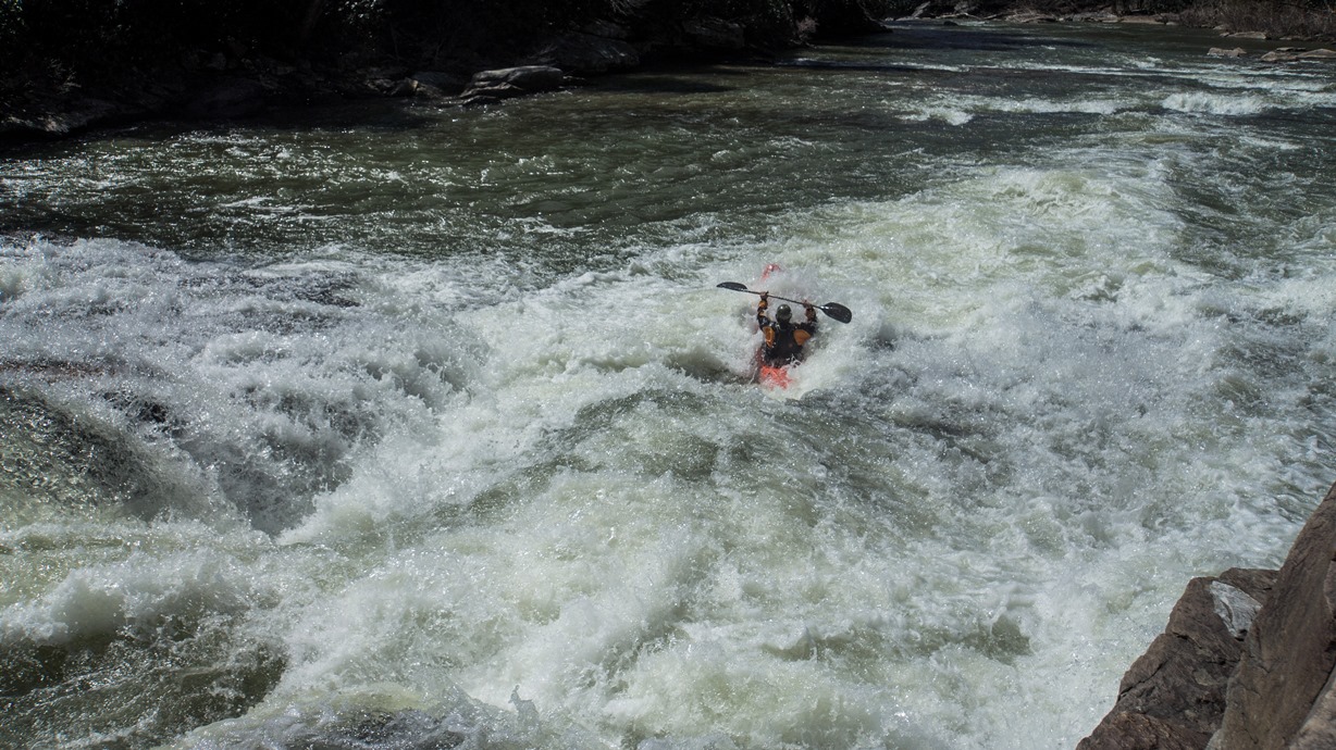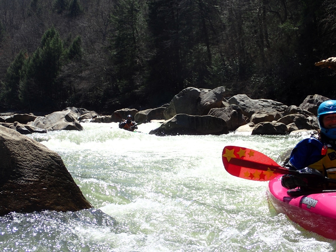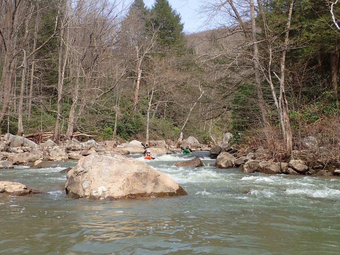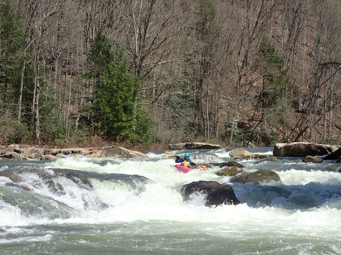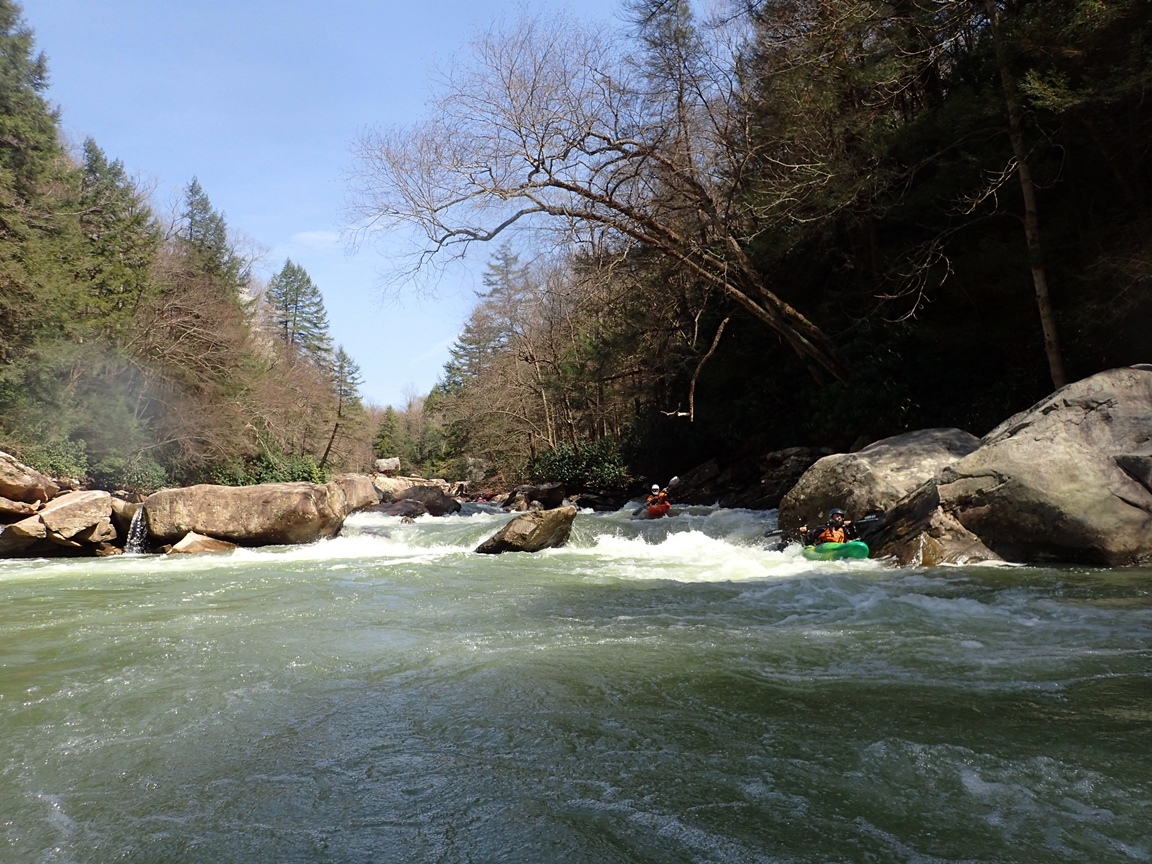 Just Below (IV). Just downstream the fun boulder gardens really get going. The first set has some of the more congested, we stayed generally left. The rapids continue for the remainder of the run, but for the most part do not have distinct character.