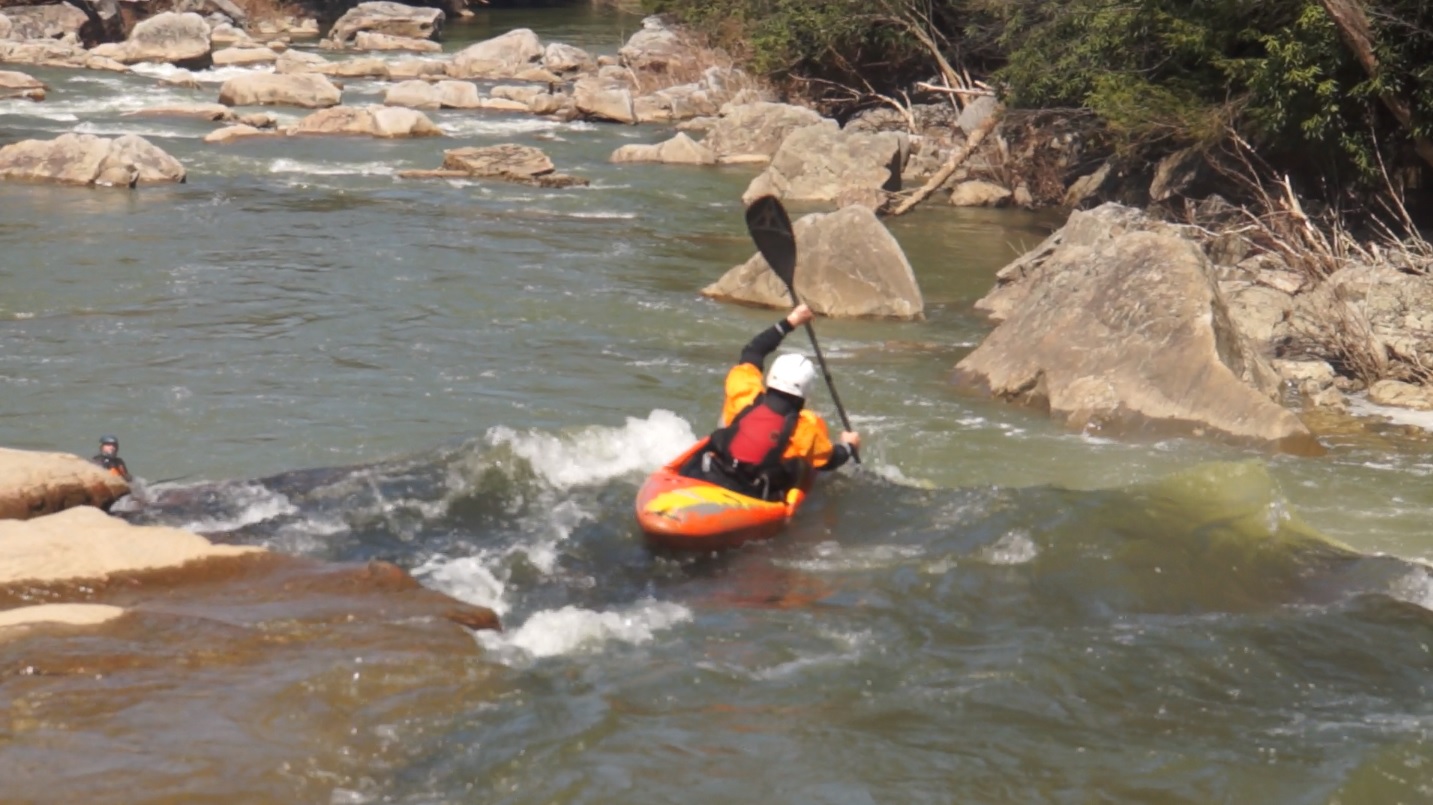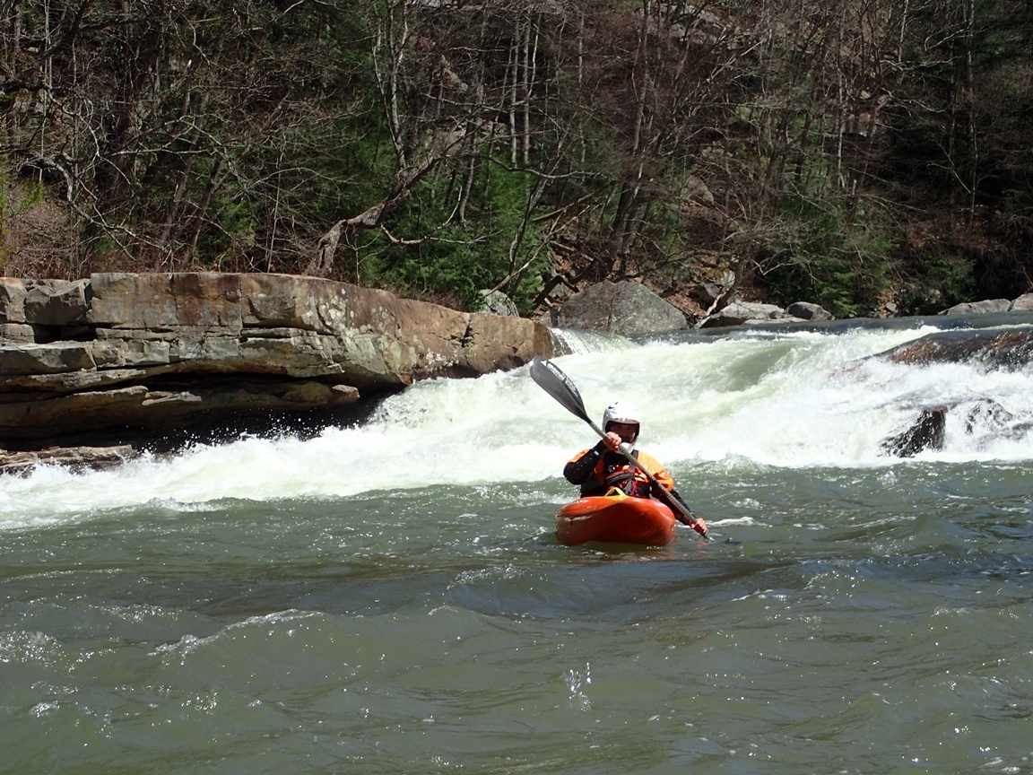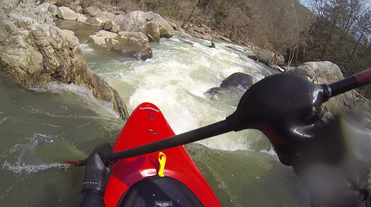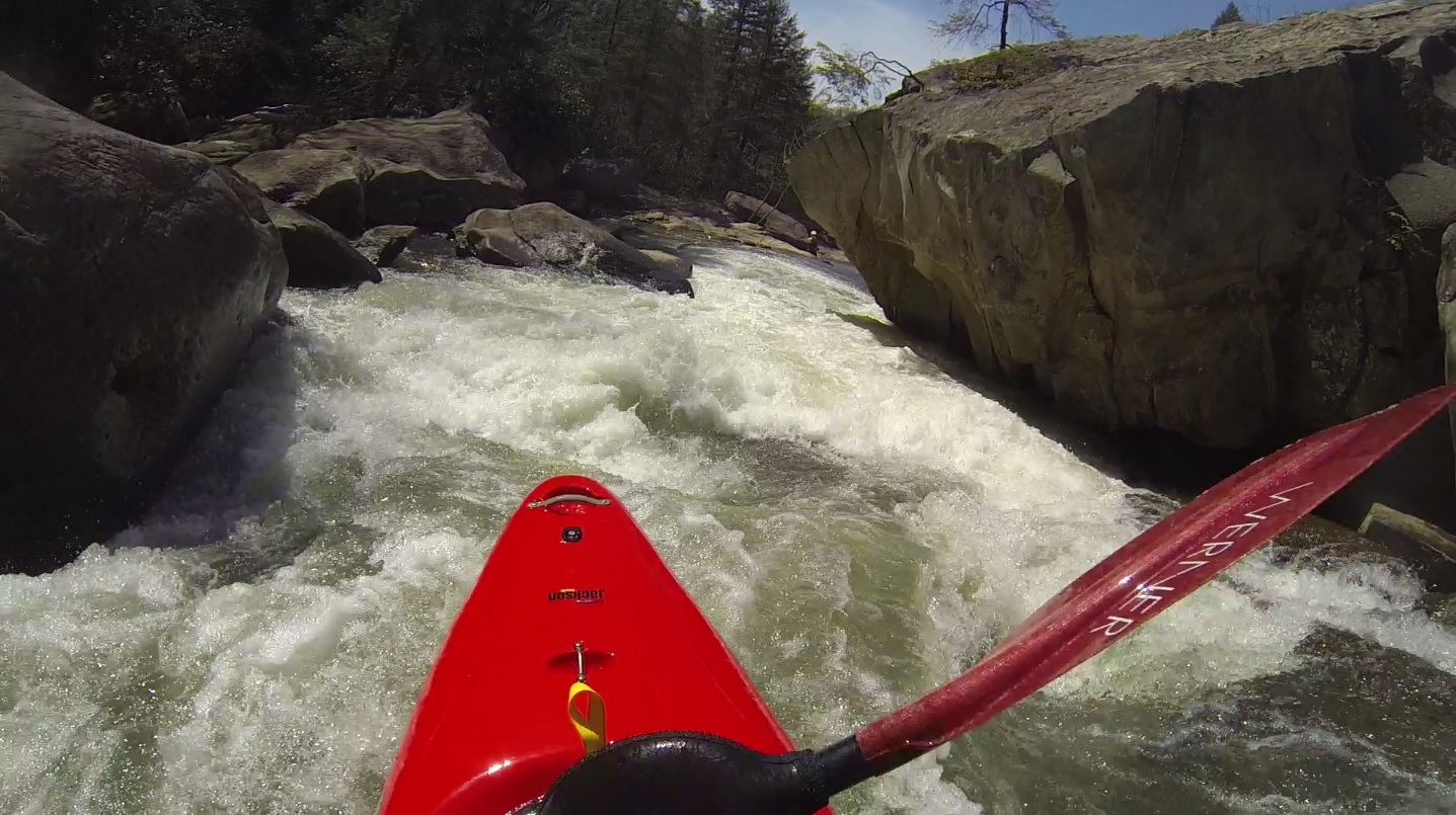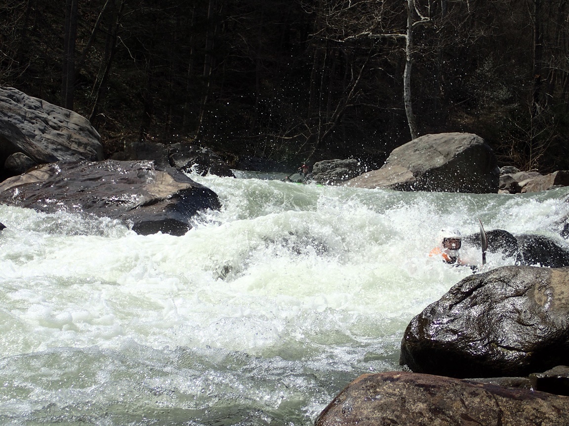 - Big Splat (IV+ to V-). Just downstream you want to either get out on the right or left to scout / portage the main event for the river. The rapid is entered down the far left channel which has a steep drop that ramps out before airplain turning around a sizable hole. The crux is to be driving left to boof around the horseshoe hole and plop into the eddy on the left just downstream. This is the pool just above the final drop. The final drop ramps and drops some 10 feet. The water moves left to right directly into a large slab rock. The key is to be driving hard right to left to boof and land just next to the slab. It goes super smooth as long as you can control your boat angle in that manner. I would hate to piton my brain out on that slab which is certainly a possibility. Also, if the horseshoe hole gets you, don't swim far right as that sieves out. So hope you have safety set on the left shore to pull you out before the final drop.