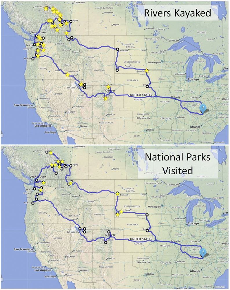 The final count was some ~10,000 miles of driving, 42 sections on 28 rivers, 19 states/provinces visited or driven through, 1 oil change, 12 national parks, and 2 bikes stolen... and to add the cheesy in, countless memories.