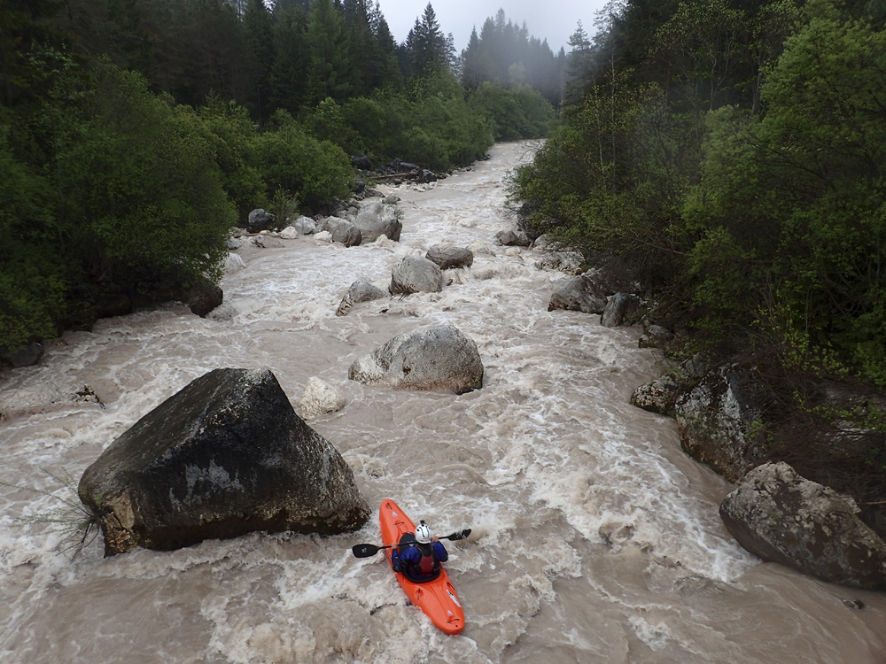 Take-out: From Cortina d'Ampezzo, head south on SS51 for 12 km to the town of San Vito di Cadore. In the middle of town, on a right bend, look for Via Senes dropping to your right down to the river. There is parking just upstream of the bridge.
