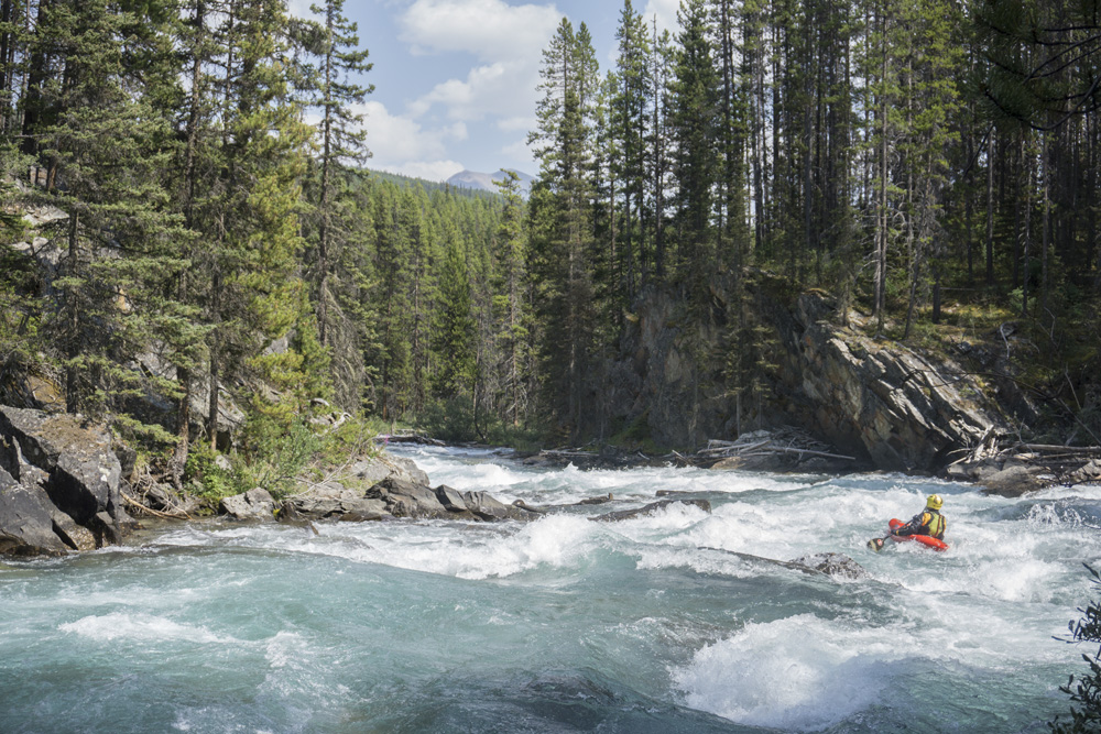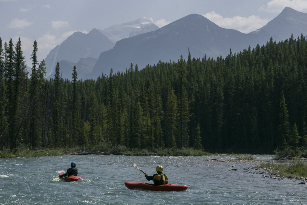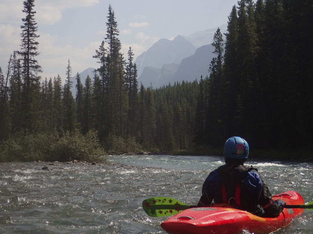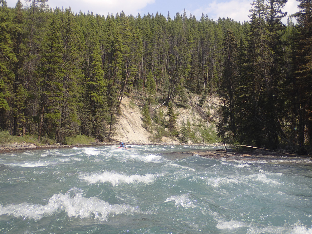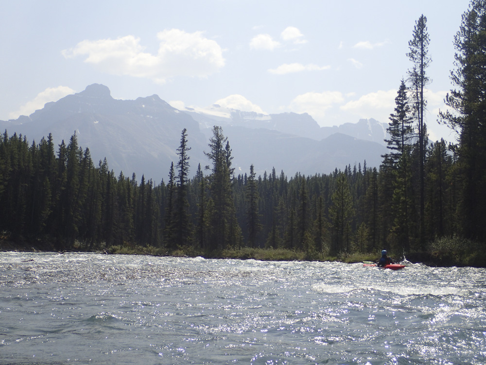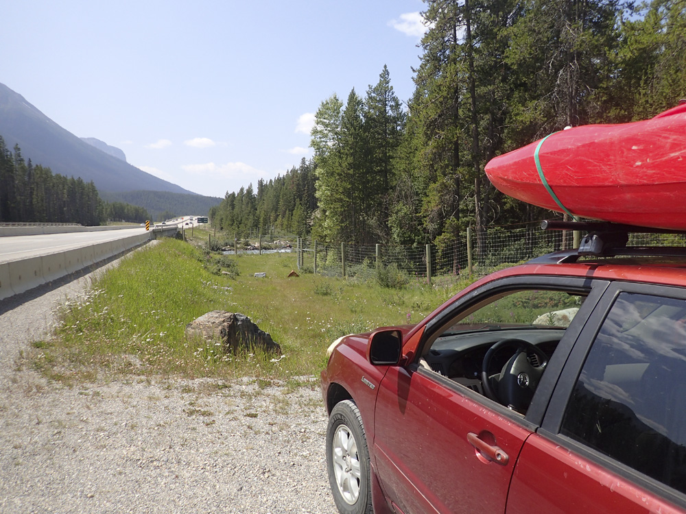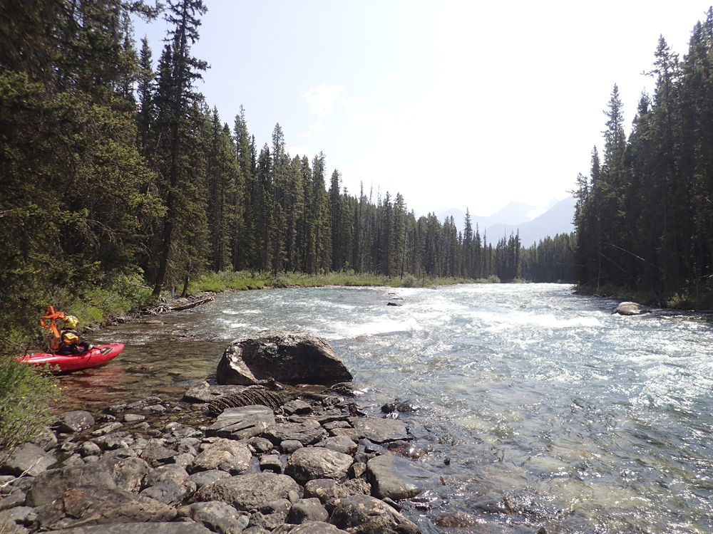 Take-out: On the Trans-Canada Highway, from Lake Louis, head North for 3 km. Just after AB-93 goes off to the North, be ready to pull into a shoulder turn out on the right just before you cross the river. Don't miss it as turning around is a pain.