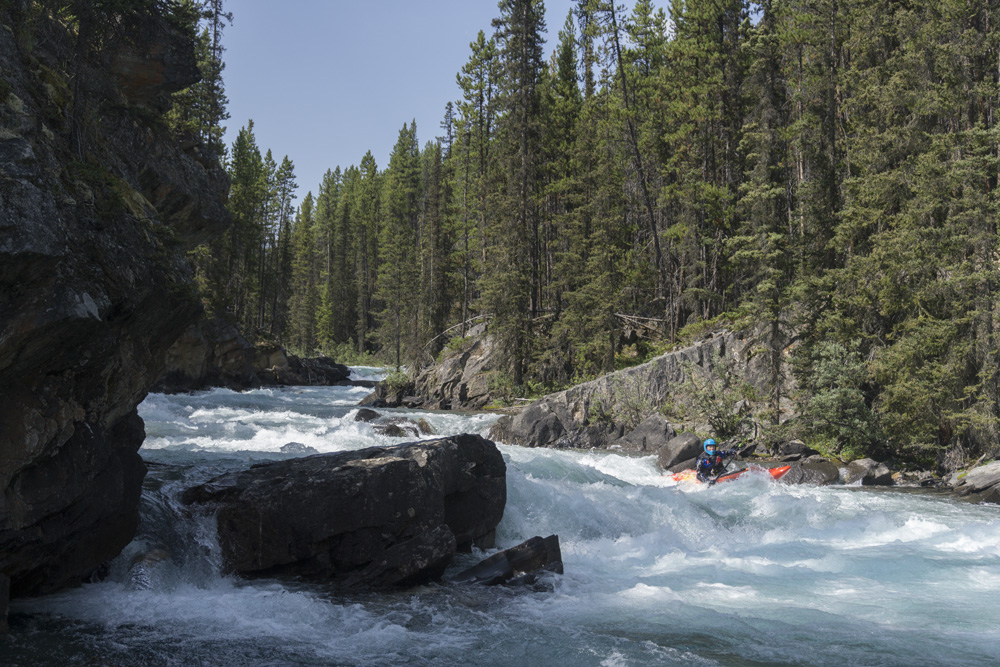 - Canyon (IV- to IV). You will get to an obvious tightening of the river on a right bend. If it is your first time, it is worth scouting on either the right or left, right being more common as you can see the whole rapid. We entered far left to boof the entrance ledge. From there, we worked to a right eddy through the top section. The bottom section had a descent hole on the right so we then worked back to the left for the exit.
