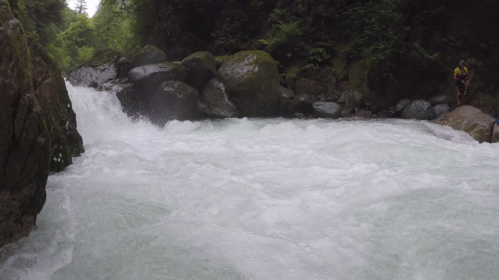 From put-in, there is one small rapid that you then want to scout below, before entering the next obviously larger rapid. In that small rapid, one in our group flipped and hit a rock on their shoulder which then caused a swim. Thank God that they were able to exit the river just at the lip of the first big rapid, as swimming into it would have been absolutely horrible. So now, we were down to three... Egor, Diane and I. We scouted the first two rapids and the line to the lip of the mandatory. We then ran the first one and Egor set safety below. We all ran the second one together, and then Egor ran the mandatory and was kind enough to set safety below for us. Setting safety is no easy task and requires a precise ferry in order to exit the river on the left shore after running the ledge on the right. Once below, you get to another big rapid that should be scouted from an island in the middle. This rapid is steep and has rock pile in the middle of the river, one way or another you want to get to the left of it and keep cascading on that side. Some cut across high, some cut across lower. At low flow the cut is mandatory, at our flow staying right could be worked out though there would be some rock interaction. The final major rapid has a very large sieve and the line changes from year to year. We snuck down the far right, though the sneak was still quit on. Then, one smaller, but sticky, double drop leads you to a junky final rapid that changes and is always a piece of shit apparently. Then bam. You are done.