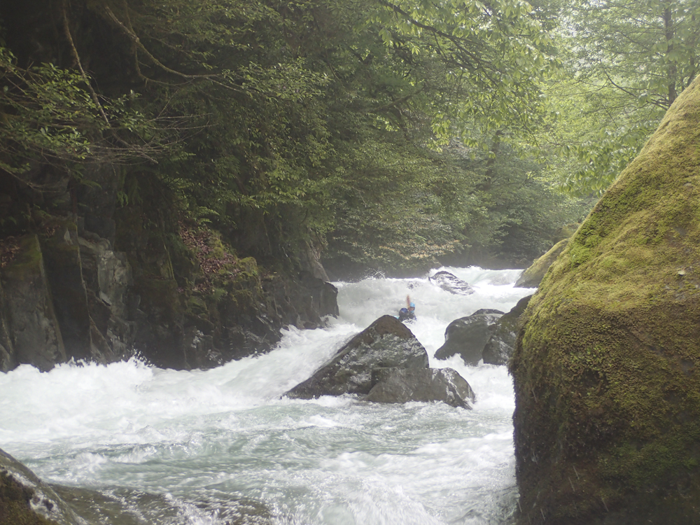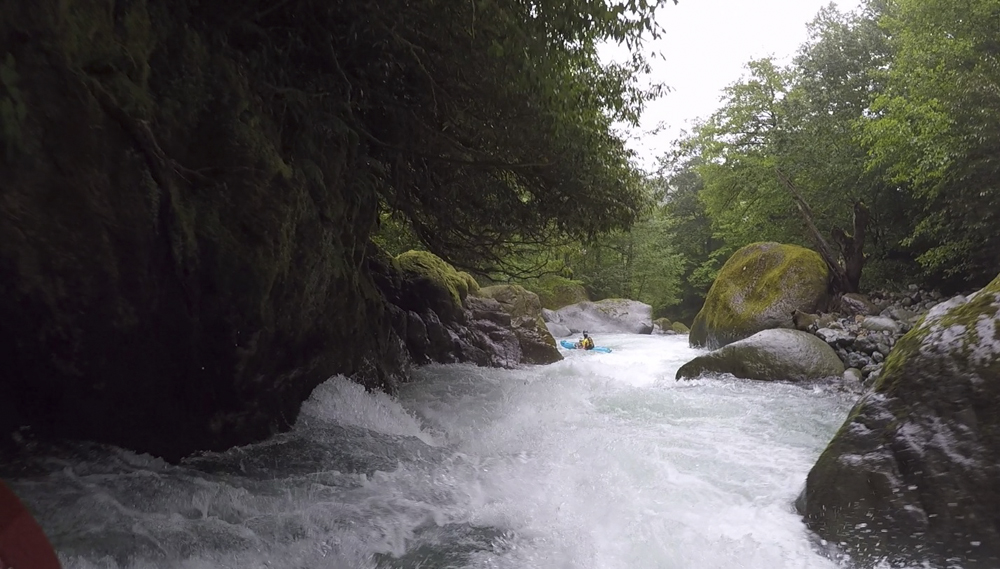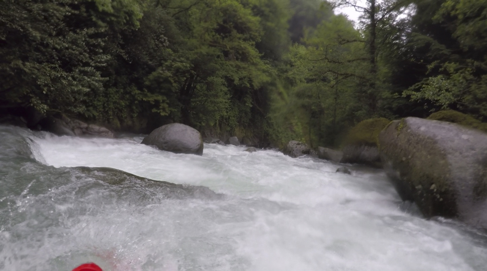 - Fourth Rapid (V). This rapid has a lot of rocks in a lot of wrong places. You want to enter far left and boof down into a small slot. This then clears you of all the danger, and allows you to then run the exit cascade easily down the center. There is another line as water comes up hugging the far right shore. There was also another line that looked sketchy which was starting right and cutting left before the exit. It looked sketchy because of a rockpile in the middle which looked pinny/sievy.