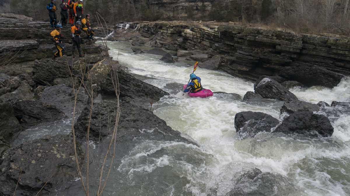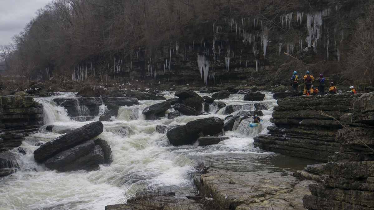 In addition to the low water Spout line, there are several others that come in as the water gets higher... leaving you wanting more and with more of a reason to return. Below the falls, the river plummets through a band of the rock that has collapsed under the power of the water leaving a sieved out mess of a rapid named Sieved City. While some run it (and it goes fine depending on the flows), many others choose rather to walk around easily on the left. Below here, the river takes a huge step down, as the water from the powerhouse brings the flow up, you are greeted by the site of the springs pouring water in from high above, additionally, at the base is a world class play spot that has featured the world championships as well as national championships. Below the play spots exists a few more smaller rapids leading to the take out and Blue Hole. All in all, this day was much more fun than I was expecting, and even at the low flow at the falls, it was great practice. I am sure I will find myself back here sometime soon!