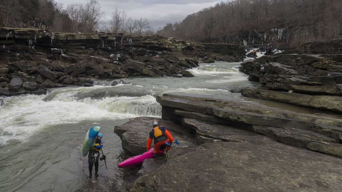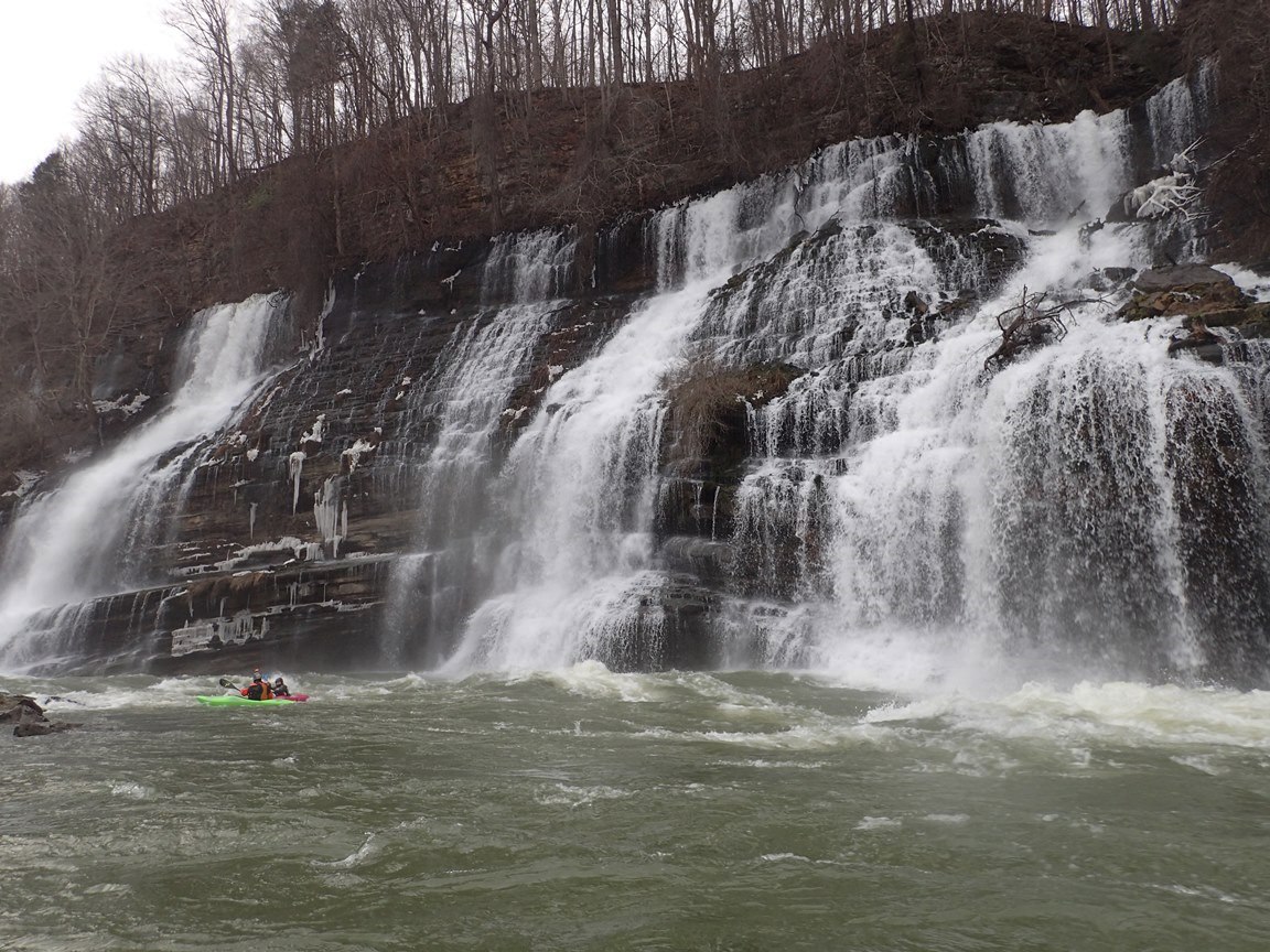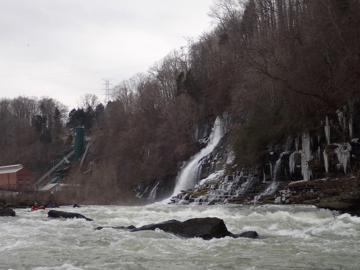 Put-in: From Rock Island, TN, take TN-287 out of town to the North West. You quickly cross the Collins River and will see the dam on your right. Just a few hundred yards downriver is river access parking lot on the right. Park here. To reach the river, walk back up the road 100 yards to a spot which the bank gently drops down to the water above the falls. Alternatively there are stairs that lead down below the falls if you aren't so inclined on running the falls.
