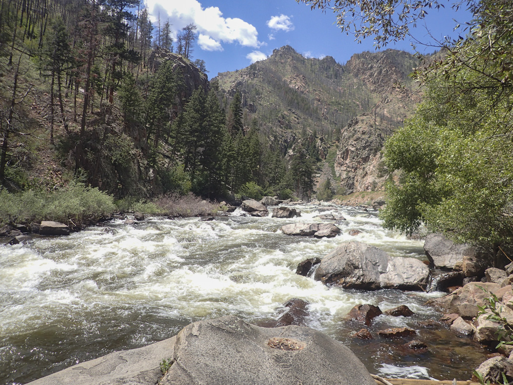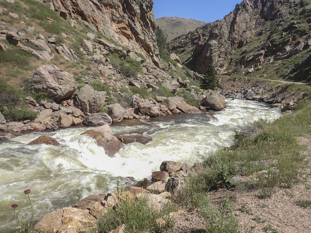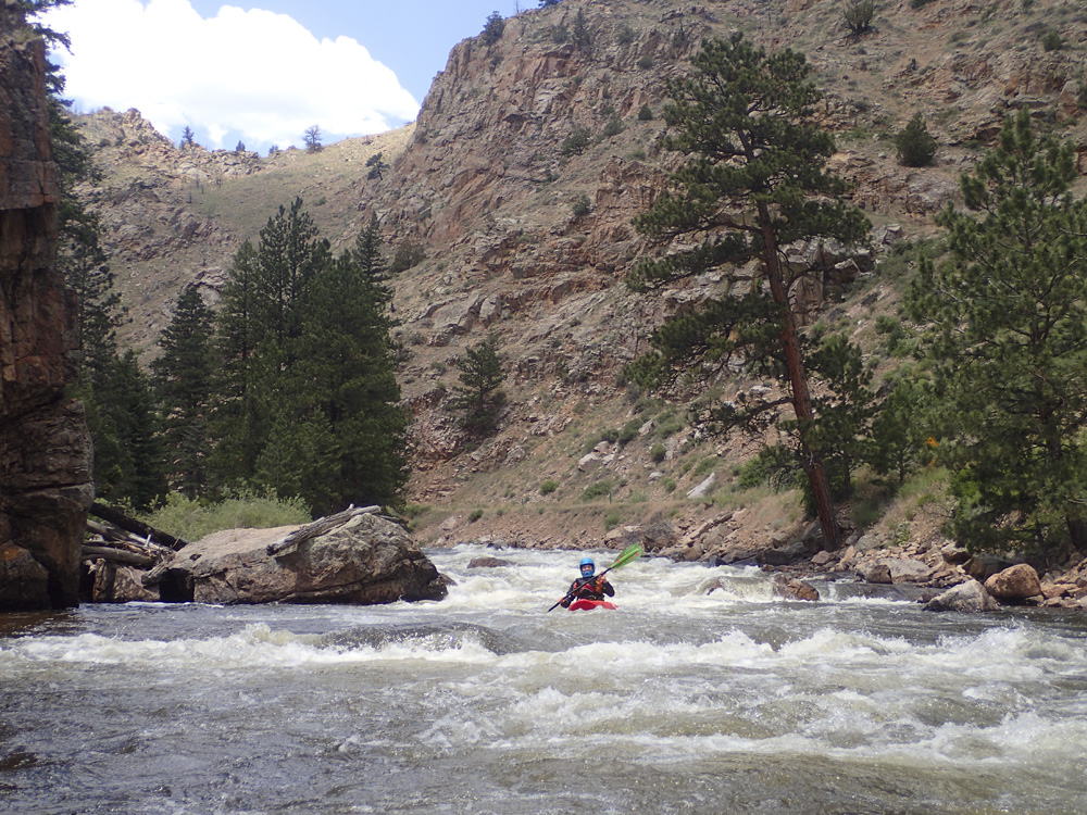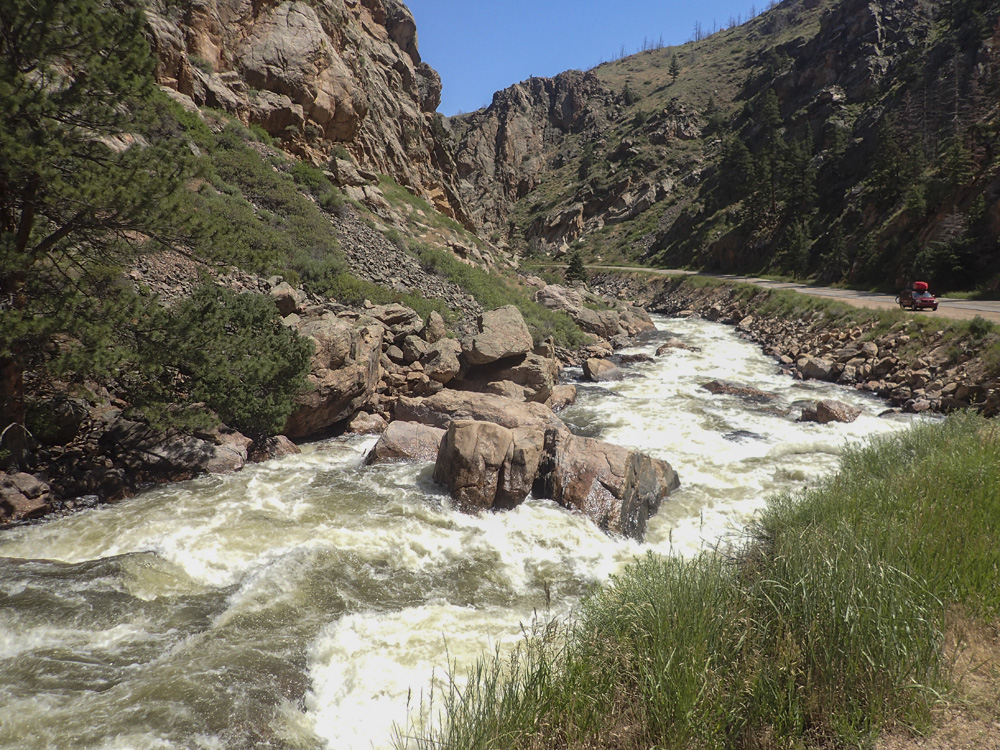 Take-out: From Fort Collins take CO-287 North for 9.8 miles before turning left onto CO-14. Follow this up the river valley for 17.3 miles to Stevens Gulch Picnic Site.