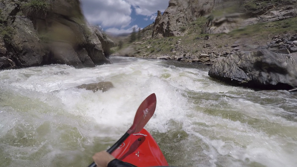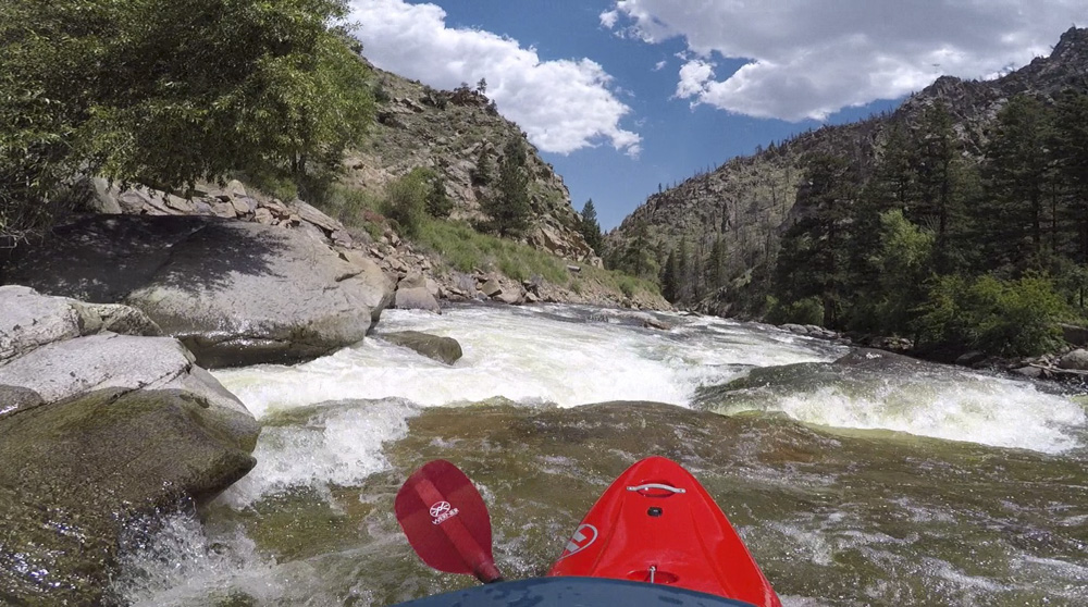 7 - The exit of the rapid has two tiers. The first is left of center down a ramp driving right so that you pop out to run the second tier on the far right, which is straight forward ramp whereas the left channel is full of rocks. The rapid then ends and you have a small paddle out to the access point.