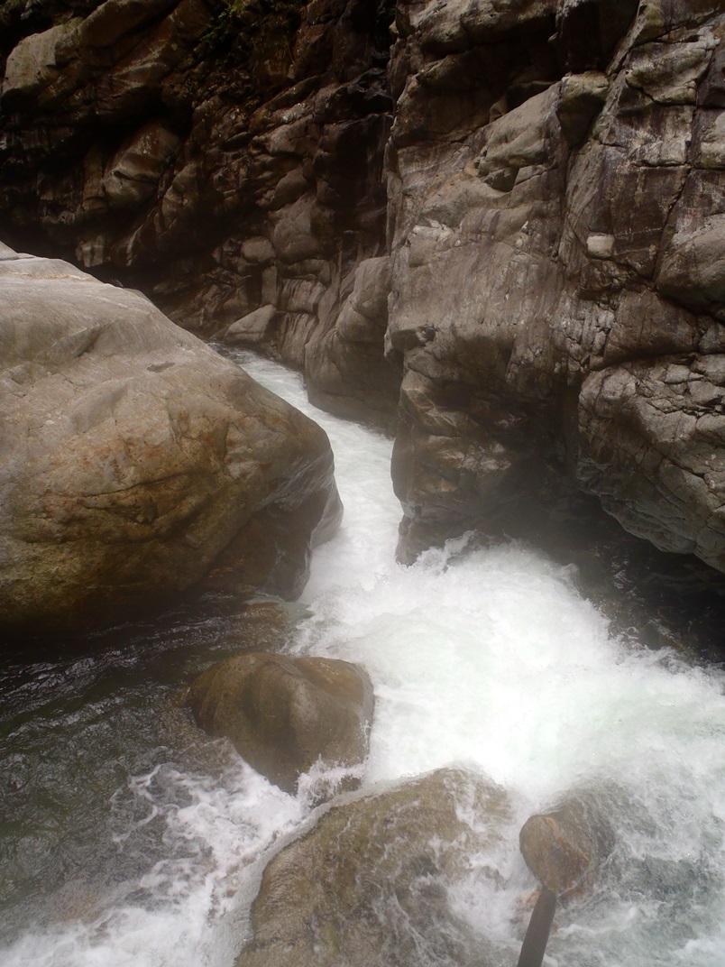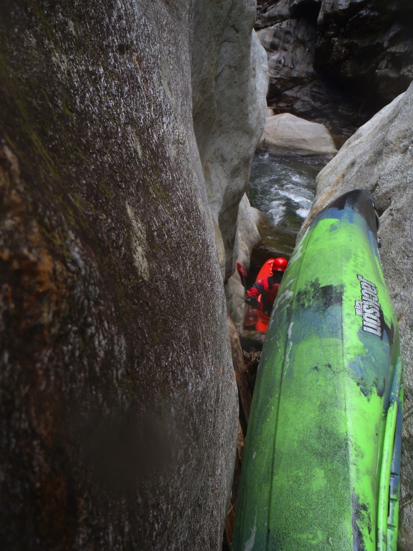 Crux 2 (IV+). Also unportageable and unscoutable... and this one also has limited eddy at the lip. We entered left which was a little bangy and then the river slides down to the left and into the wall, try to slide with some right angle. Below the canyon tightens to 4 or 5 feet wide.