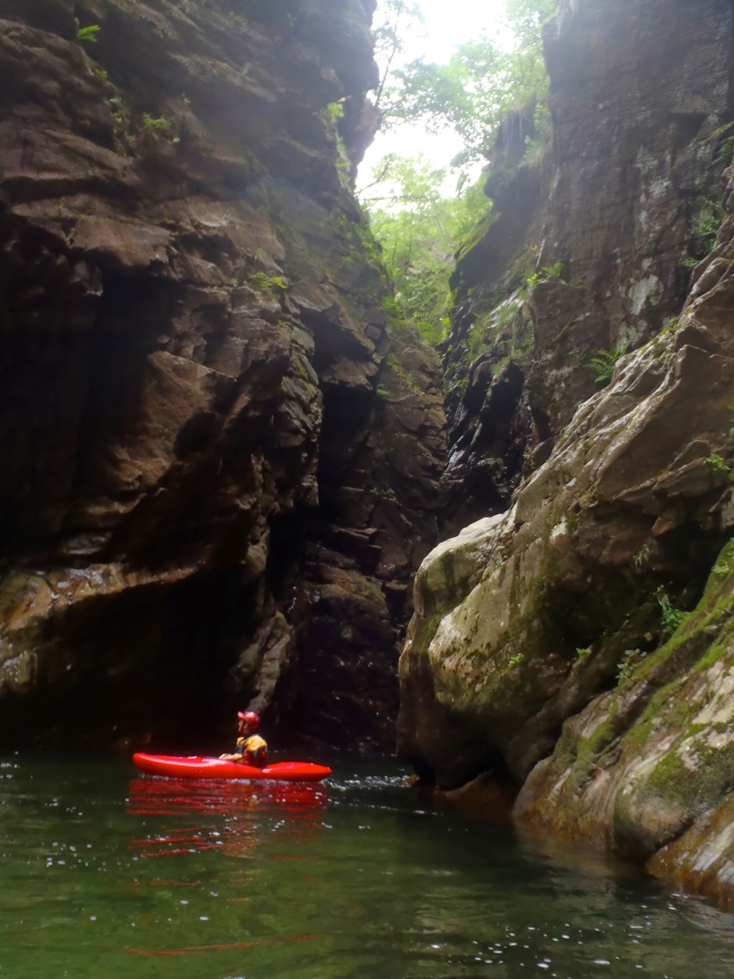 If a 2.6 mile long walled in gorge, with sections so narrow your boat can't turn around is your thing... then this river is for you. The run needs to be low due to the crux of the run deep in the walled in gorge. There are two rapids, both of which can cause problems at higher flow... and both of which would be extremely difficult (read impossible) to set safety on from above. Once one person probes then things change a bit. But I have seen video of groups who have had to scale up the wall when hit by the first of these two drops at higher water.
