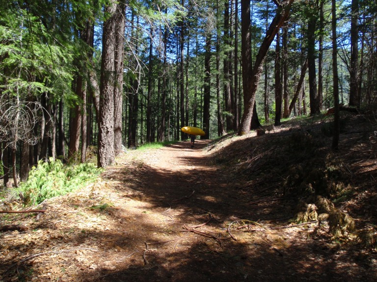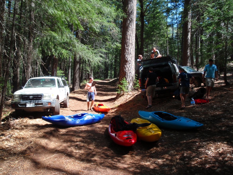 Put-in: Continue up Maybert 3 miles to Golden Quartz Picnic Area. Drive past the picnic area and drift left at the no trespassing signs. Go up the steep hill that continues getting steeper. Soon you will get to a gate, if it is locked, drop your boats and park 200 yards back down the road at the wider turnout. If it is unlocked...after another 0.5 miles driving, park at the top of the grade. There is a hill clearing on the right that you can pull up onto. Hike the remaining half mile to the river. The road is washed out, thus necessitating the walk. The full hike takes about 30 minutes. The half hike takes maybe 15.