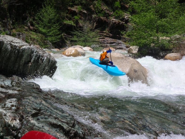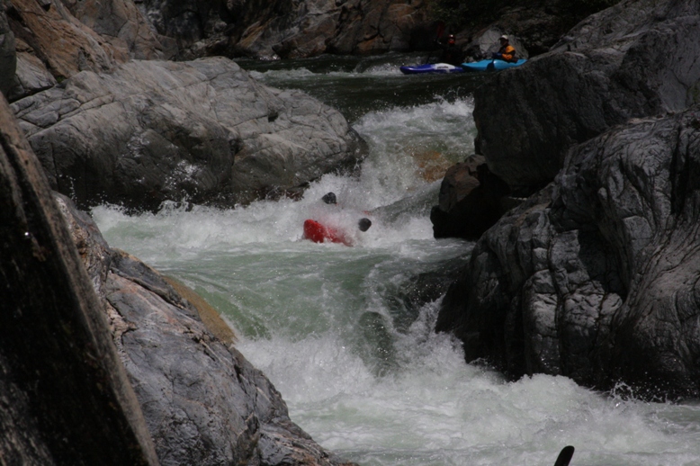 My day almost didn't even get started. The night before my family went to San Francisco for a concert on the bay and I didn't get back to Concord until midnight. As I drifted off the 9 am in Grass Valley meeting time seemed impossible, not to mention enough energy to boat some Class V. As morning came (6 am) I began my drive. As I arrived at Grass Valley and took a nap, I realized I had no energy and wasn't going to boat. At put-in, others in the group were feeling marginal on their desire to boat. We hiked to put-in to talk ourselves into it, I still say I am not boating and then head back to the car. A few feet into the walk back to the car something in my mind changed and I decided to put on. What a great call. Sure enough, after one rapid and the accompanying mix of adrenaline and cold water to the face, I was wide awake.