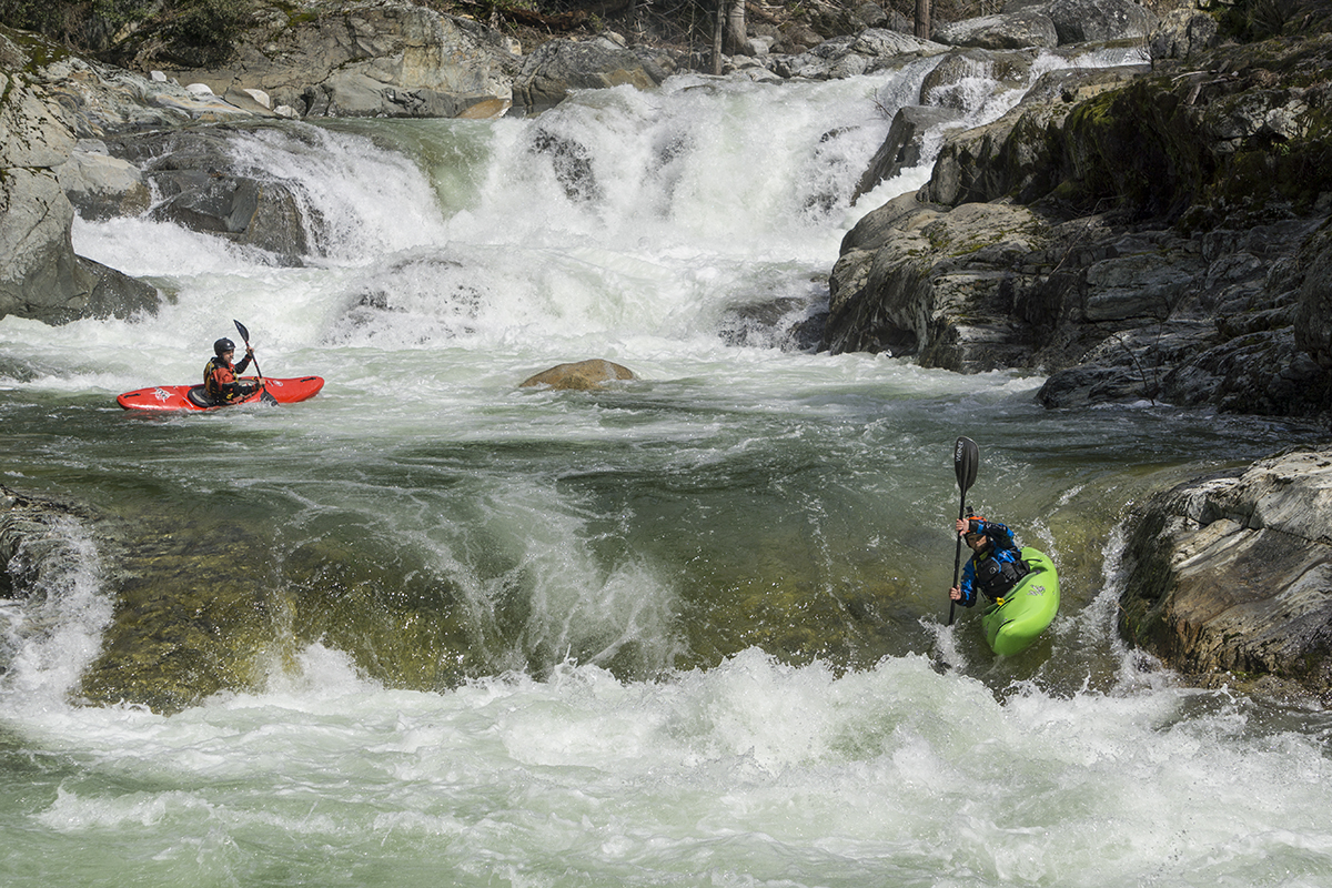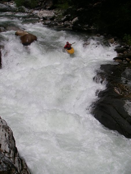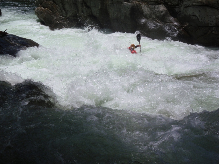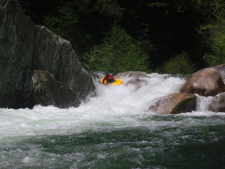 Cascade (IV+). Ok, so it is really only a one move rapid. However, it is big, steep, and very rocky. If you flip in the entrance curler to you almost certainly be in bad shape. Also note, there is a rock after the first drop so keep you nose up.
