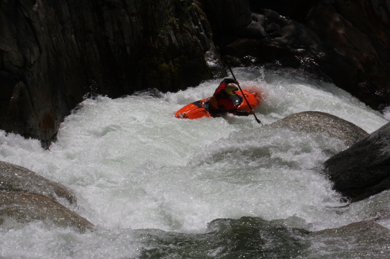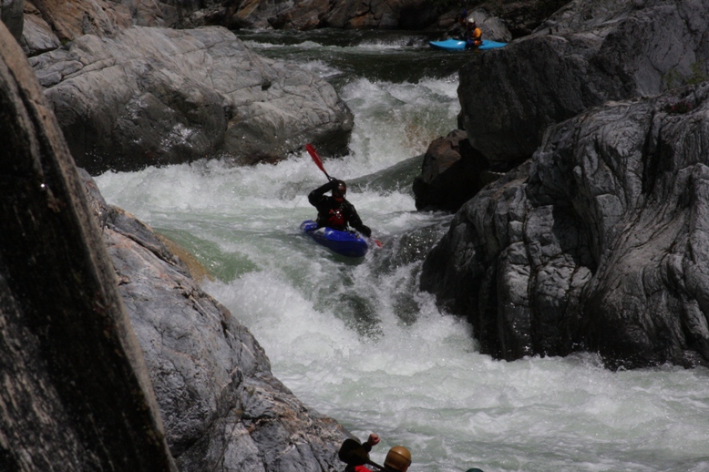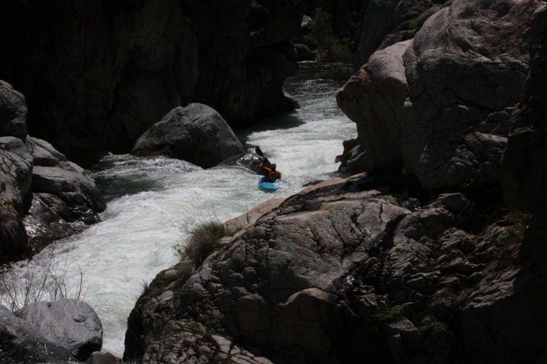 Although this run is short, there are many rapids. And you can walk most of them. However, even the in between stuff can be big and is certainly sieved out. Furthermore the rapids are fairly continuous so swims are not desired (as if they ever are). On that note, when I say something is class IV+, it is only that rapid I am talking about, there may be another class IV+ just downstream of it, or upstream, thus making the section more of a class V experience top to bottom. It is probably a good idea if you are all having doubts, hike up from take out on river right until you can see the last gorge, these are typical rapids that you will be expected to run. For reference we had 300 cfs in middle of May from a dam release brought to us by American Whitewater... Thanks guys!