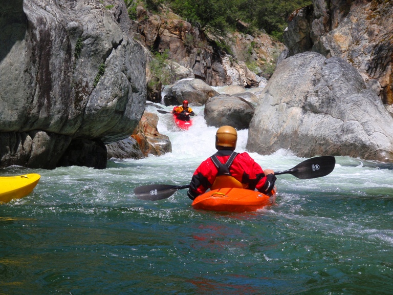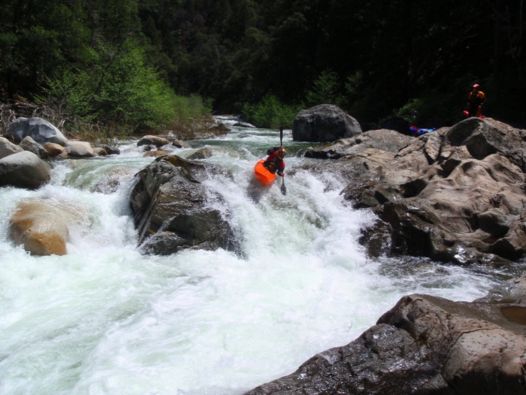 Take-out: From Highway 49 in Grass Valley, take Highway 20 towards Truckee. After 16 miles, turn left on Washington Road and follow 6 miles to the town of Washington. Cross the river and continue right on Maybert Road. Follow 4 miles to Canyon Creek. Just on the far side, 100 feet past the bridge on the right there is a turnout that fits a few cars.