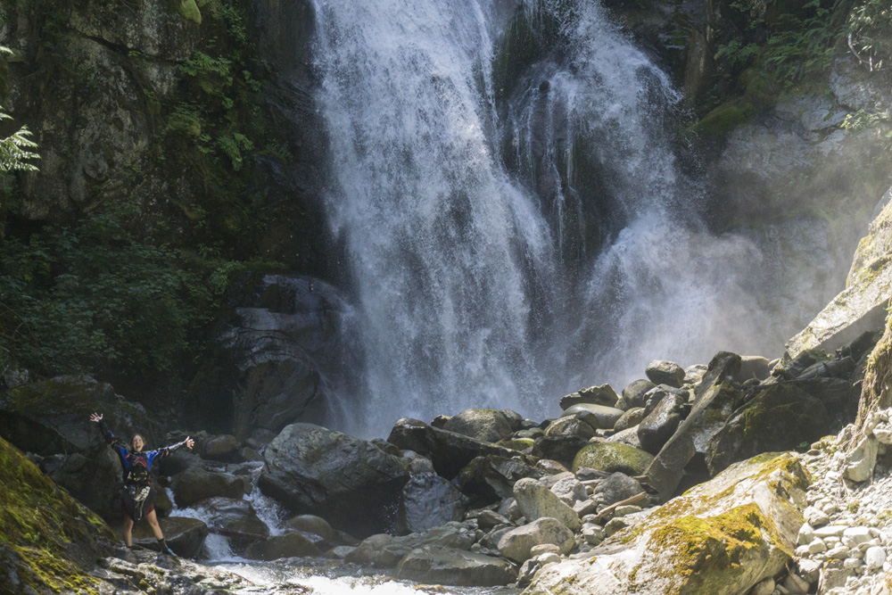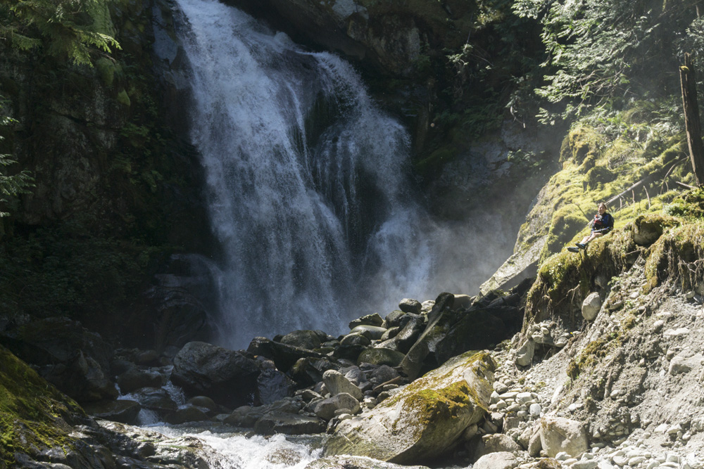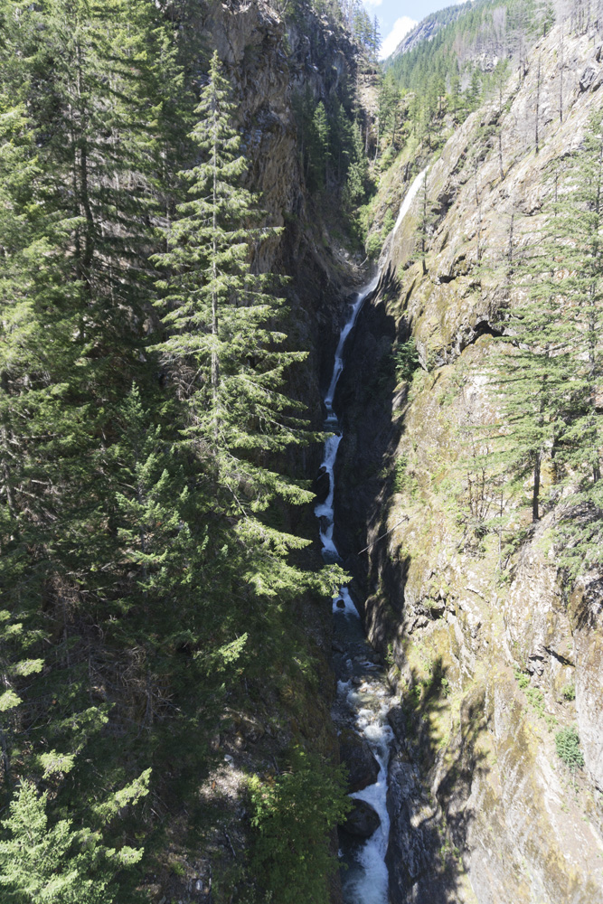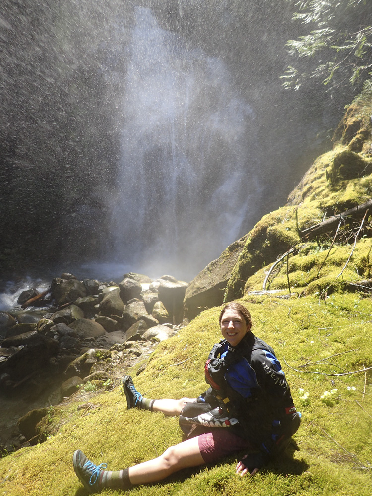 Irene Creek enters on the left, the moss on the right shore up at the falls is awesomely soft. It is worth a few minute detour.