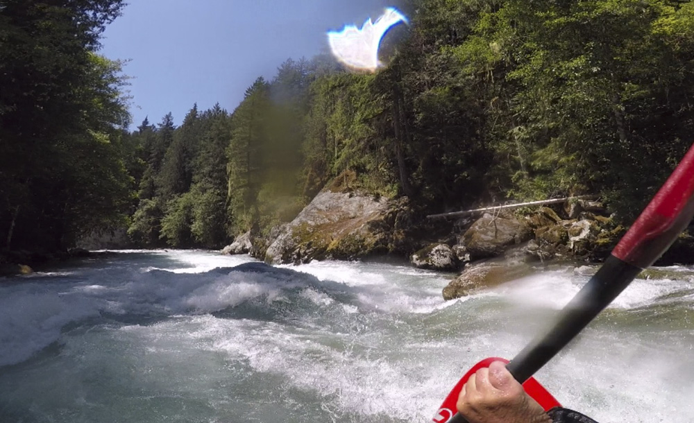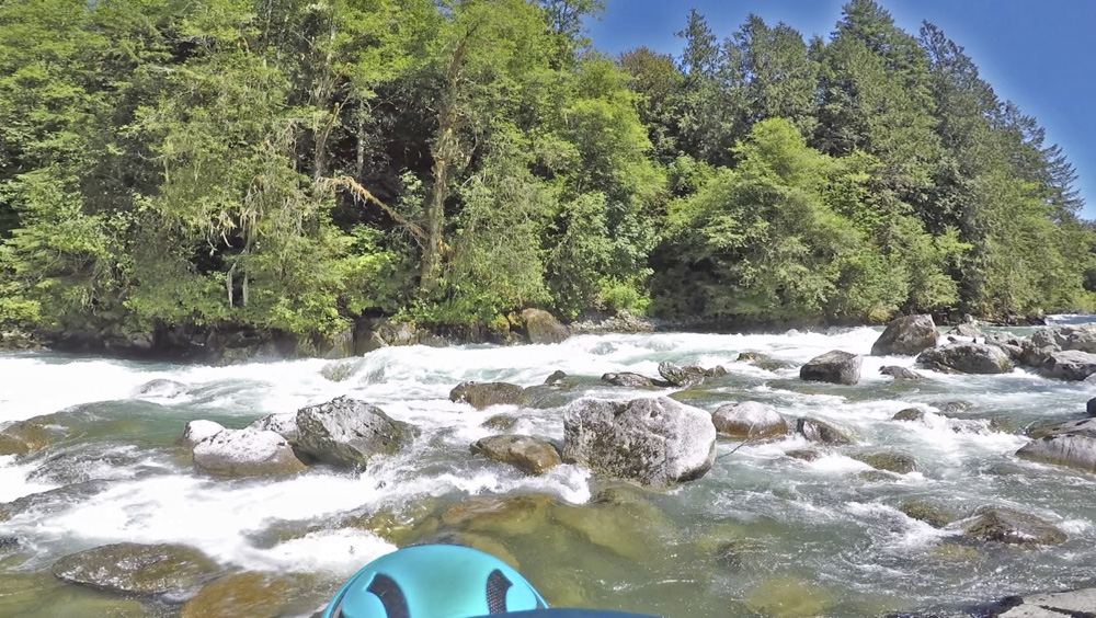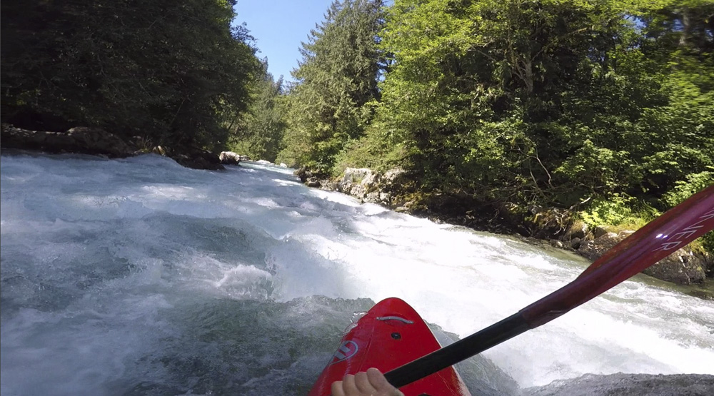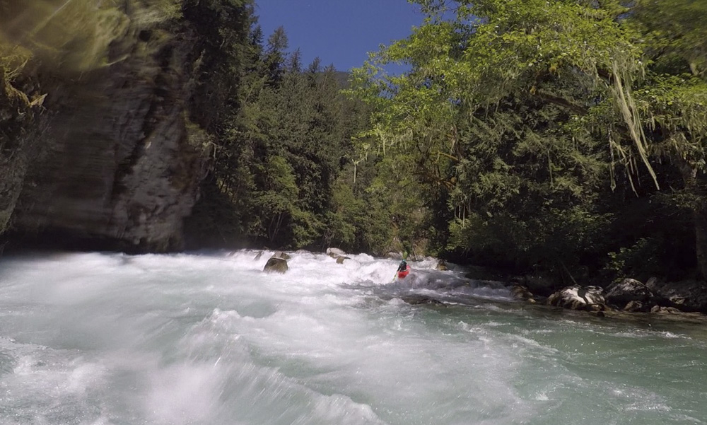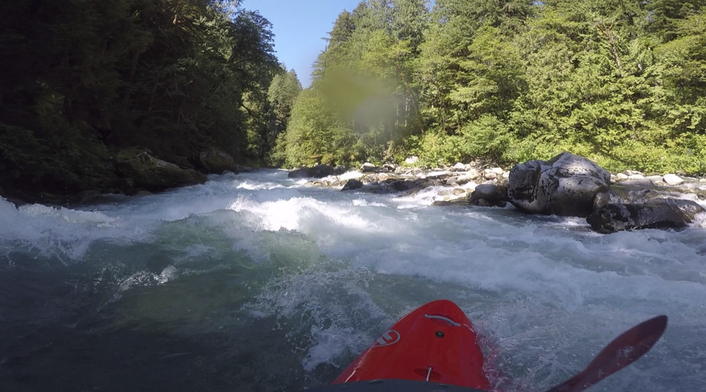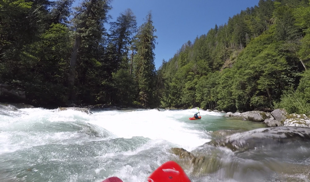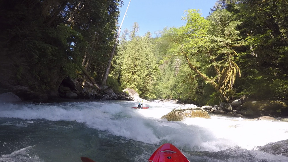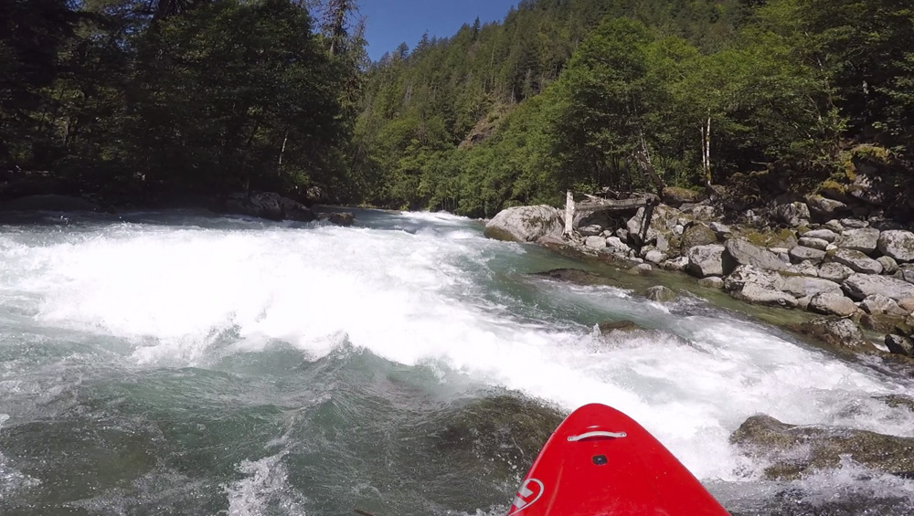 - Premium (IV+). After some long boogie you get to an obviously larger horizon that is blind from above. We scouted on the left easily. Scout earlier rather than later though as the line is on the far right, we had to carry back up a short ways to make the ferry. The line was down the right, we boofed over a small rock and then just ran down the tongue and into the soft wave hole below. The left is a large hole.