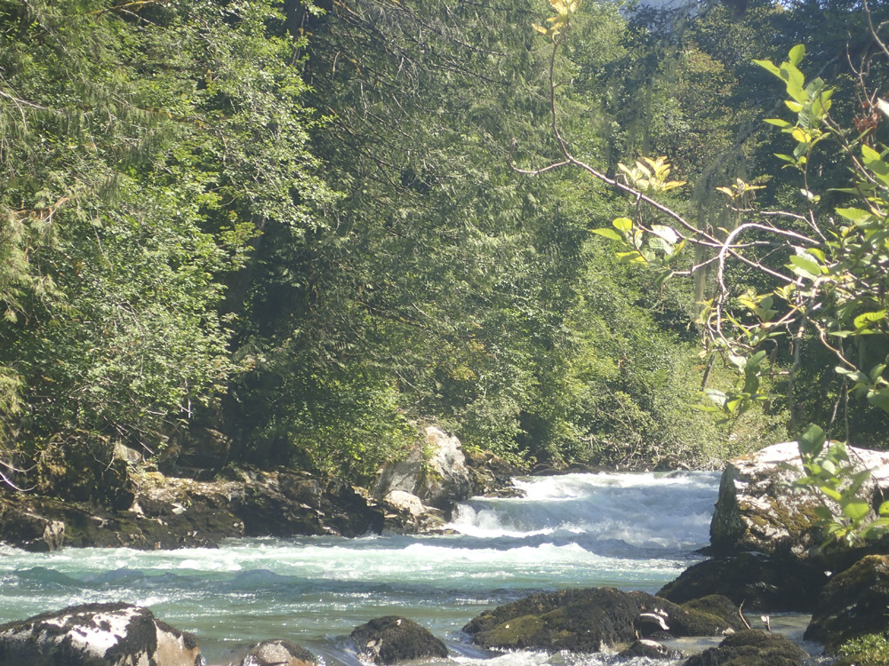 Put-in: Continue up Cascade River Rd for 7.8 miles. Soon after crossing Marble Creek you will see signs for the forest service campground, Marble Creek Campground. Turn right and head down and around to the day use area at the bottom which is in a grass field. Note it does cost $5 (in 2018) to access the river via the day use area.