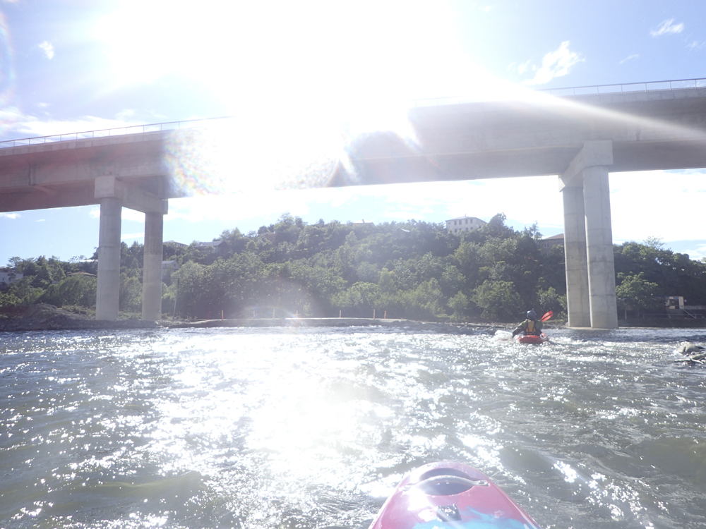 - Bridge (P). When you get to the highway bridge, note that much of the water goes through pipes under some construction. Who knows if this is permanent. We portaged quickly on the right.