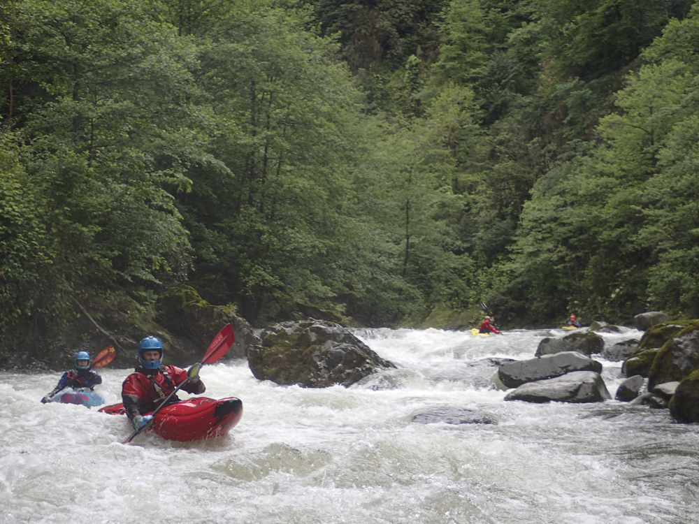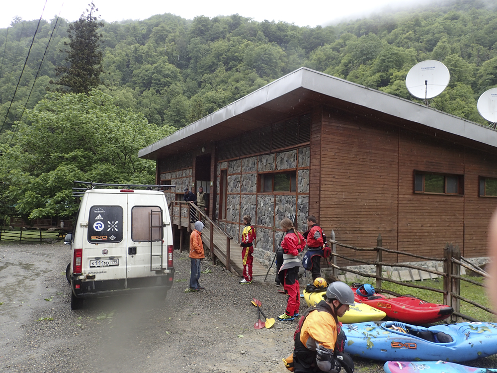 With rain having hit the area the prior night, Egor used our "flex" day to hit a rain-needed run an hour north of Batumi. This run is up a rough dirt road that follows the river. You can see the crux of the run from the road, but once on the river the road is never really noticed. On our first lap of this upper section, we put-in at the National Park's visitor center. They had nice displays with English translations and were happy to have us and let us put in behind their center. This resulted in us having an extra km or so of somewhat manky boating down to a confluence where the flow doubled and the river channelized. It was worth doing once to put in from the top for sure.