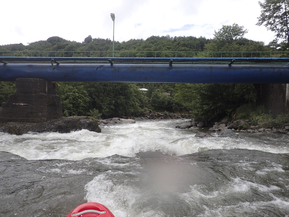- Normal Put-in (III-). The normal put-in is above one last kinda steep and junky rapid that was best run far left. This is under the road bridge that you drive up on. Immediately below, there is a confluence with a sizable tributary (Sachokhia) which doubled our flow. Below, rapids continue.