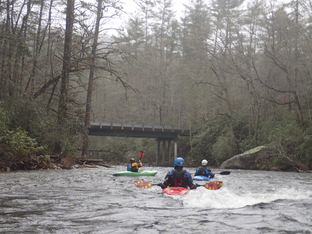 Take-out: From Sylva NC , take NC-107 south for 39.2 miles. Look for the small paved right turn onto Burrells Ford Rd (FS646). Follow this for 2.7 miles which is mostly on dirt. There is a campground before the bridge with a toilet. Just after the bridge there is a parking area on the left.