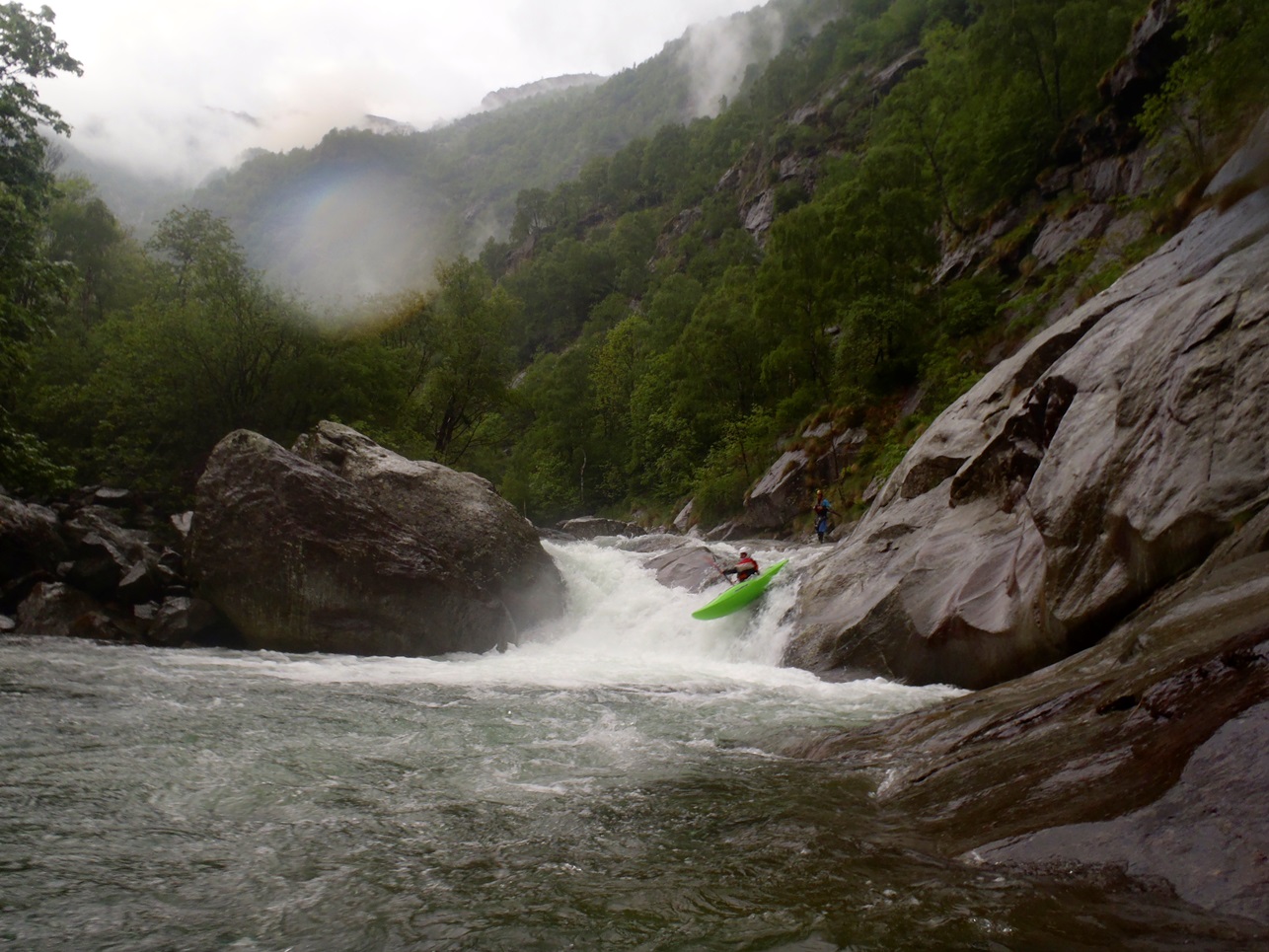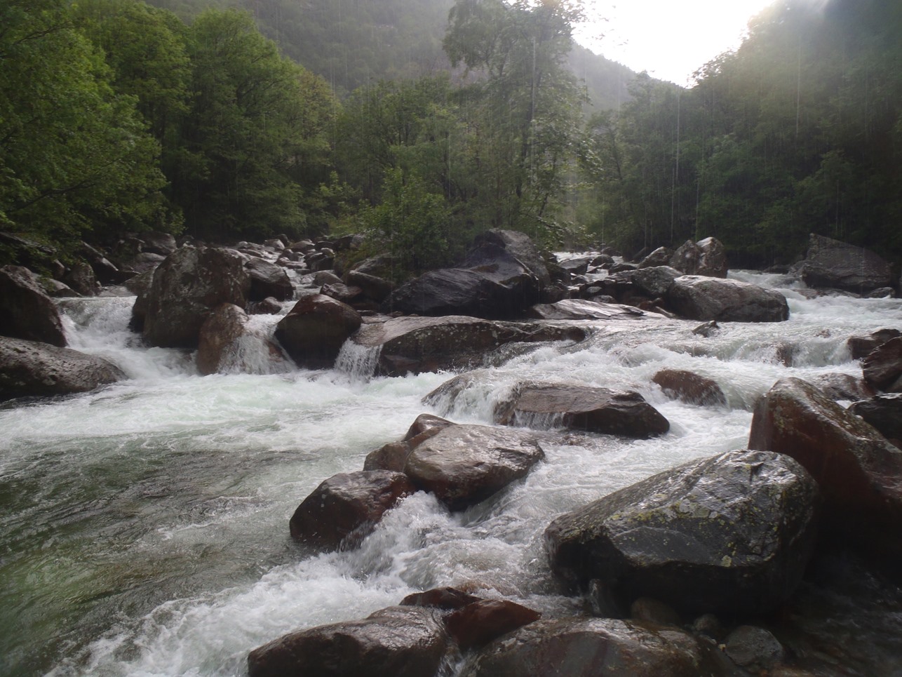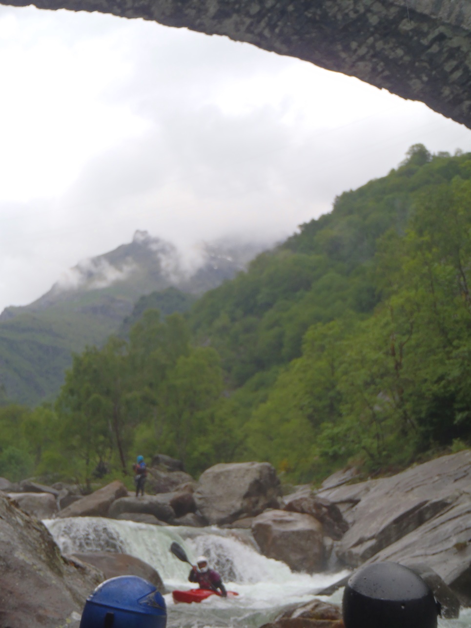 We left Campertogno at 8 am to start driving... the sun was shining and the drive went quick. As we arrive though we are told that it has been raining cats and dogs in the mountains all night. And no sooner than they finished telling us that, than it once again started raining hard. Upon inspection of the most famous drops on the Chiussella, it was obvious the flow was high, too high to safely run those drops. But, luckily with the Chiusella, when the river is high... you can put in below those three drops and continue downstream... and go past the normal take out and getting an additional km of fantastic whitewater. Some in our group still had not had their fill and decided to continue on even further though most of our group was still too tuckered from jet lag and two full days of boating.