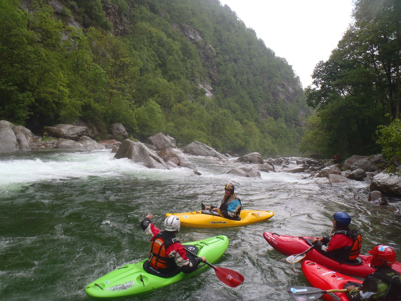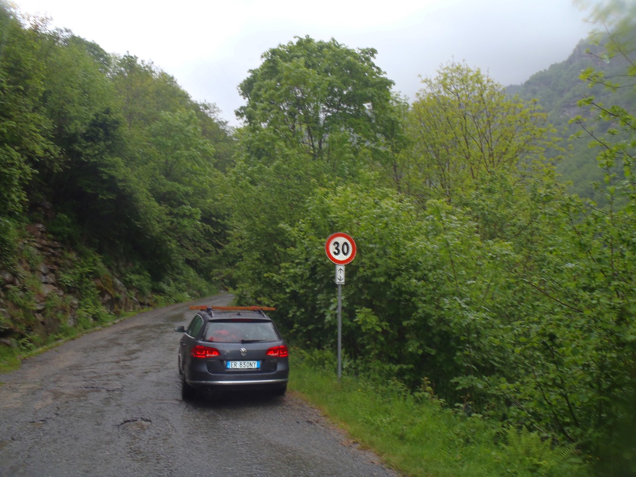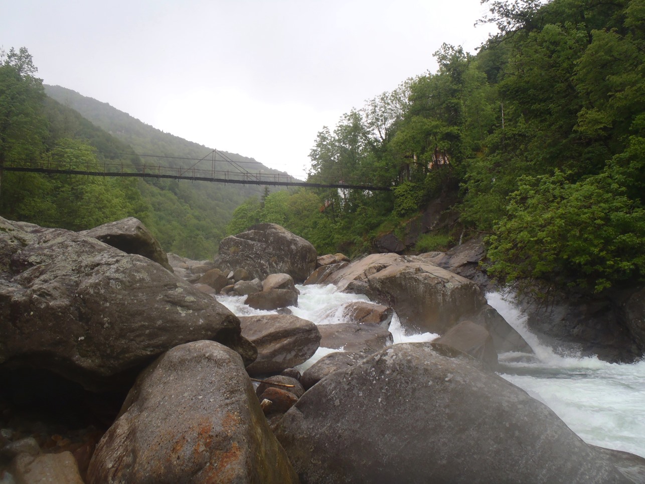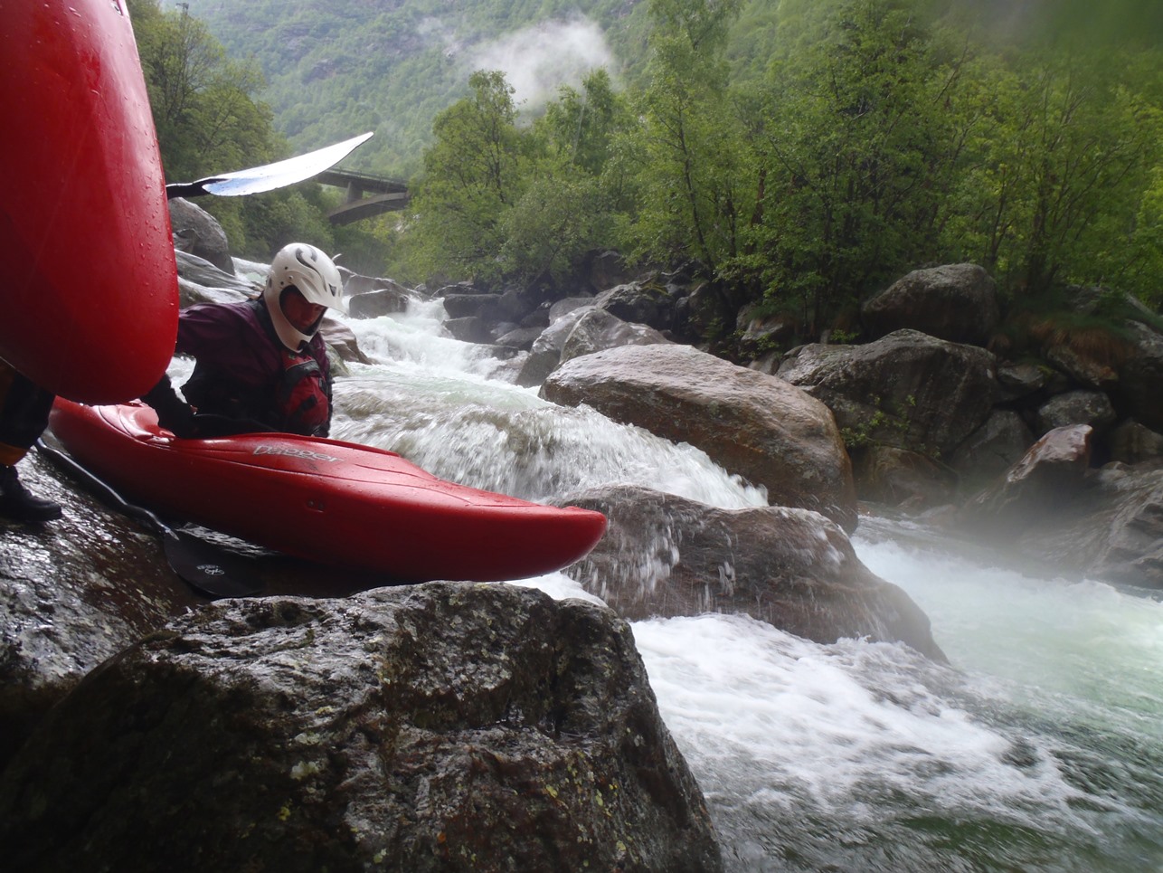 We left Campertogno at 8 am to start driving... the sun was shining and the drive went quick. As we arrive though we are told that it has been raining cats and dogs in the mountains all night. And no sooner than they finished telling us that, than it once again started raining hard. Upon inspection of the most famous drops on the Chiussella, it was obvious the flow was high, too high to safely run those drops. But, luckily with the Chiusella, when the river is high... you can put in below those three drops and continue downstream... and go past the normal take out and getting an additional km of fantastic whitewater. Some in our group still had not had their fill and decided to continue on even further though most of our group was still too tuckered from jet lag and two full days of boating.
