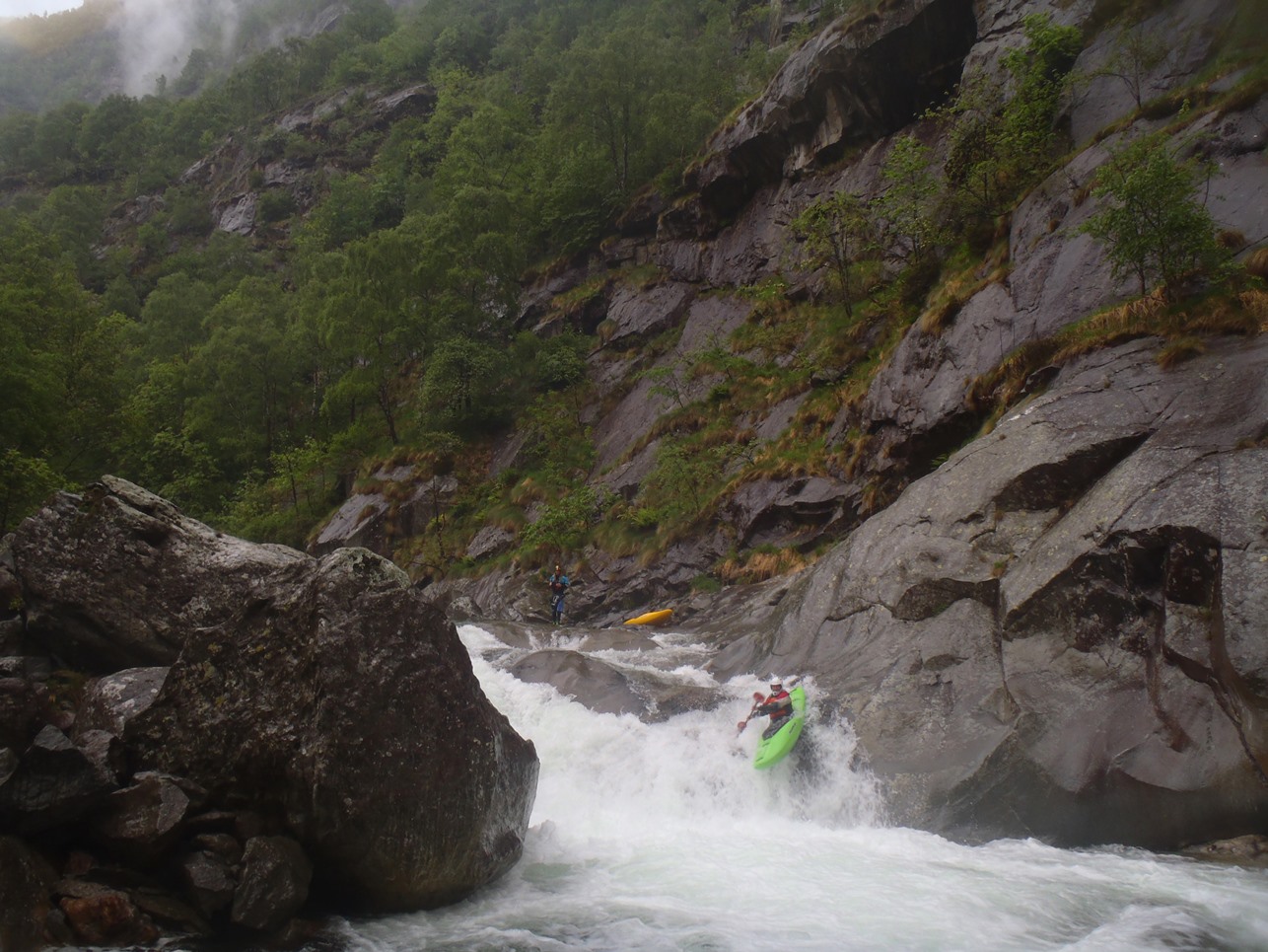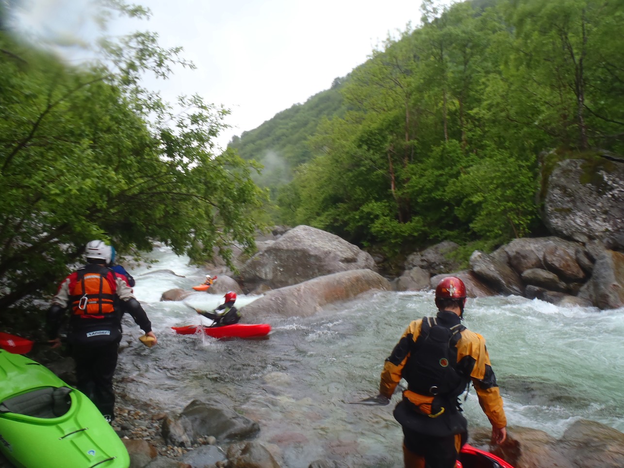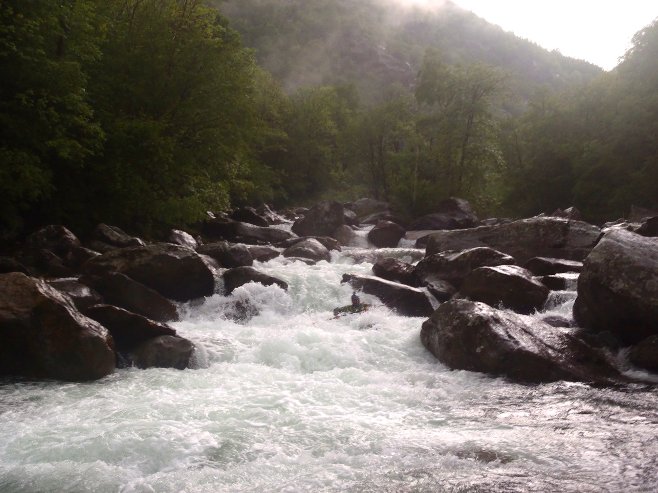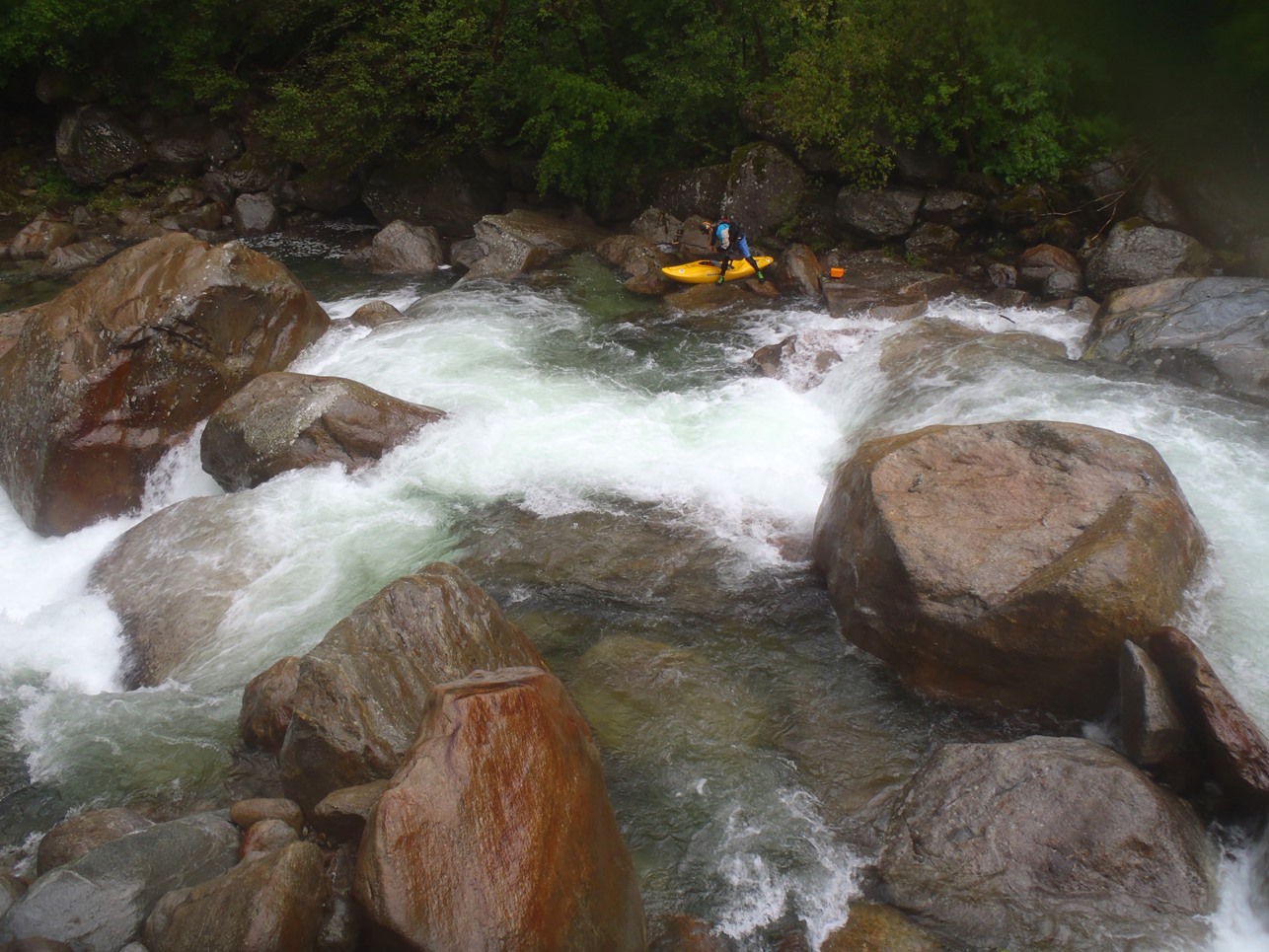The run starts off which some very nice bedrock. 20 feet below put in is a large drop that goes much better than it looks. The bedrock quickly changes to boulder gardens once you pass under the road bridge. Most of the group portaged one particularly congested rapid early on. Near the normal take out is a large slide with a tricky hole and pocket eddy to avoid. Downstream the boulder gardens ratchet up a step. Getting steeper, harder, and more consequential. I feel that this section of river is the hardest that we did on our trip. Steep drops with powerful holes in and amongst sieves. Halfway through this lower section we once again portaged a junky rapid that had no clean lines. Below, the river let up to class IV+ and ended with one super nice boof. Take out was at a camp that is expensive to stay at, but if you are in need of a shower they are only 1 Euro. 3 members of the team decided to continue down to Traversella and reported less portaging and overall easier whitewater. From the road on the drive in, this section did not look overall that inspiring... but they said it was fun.
