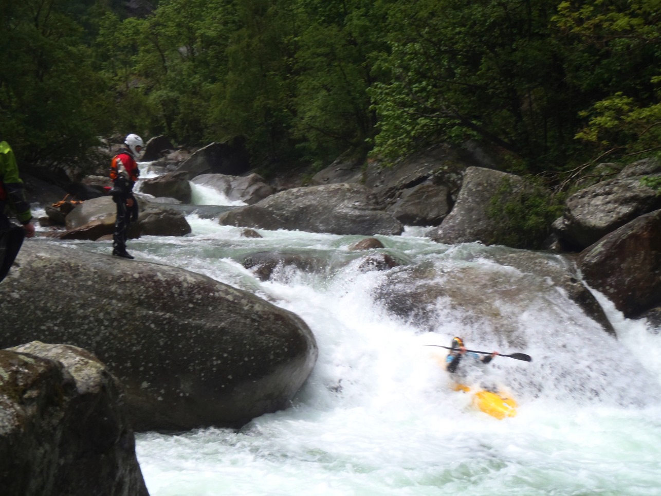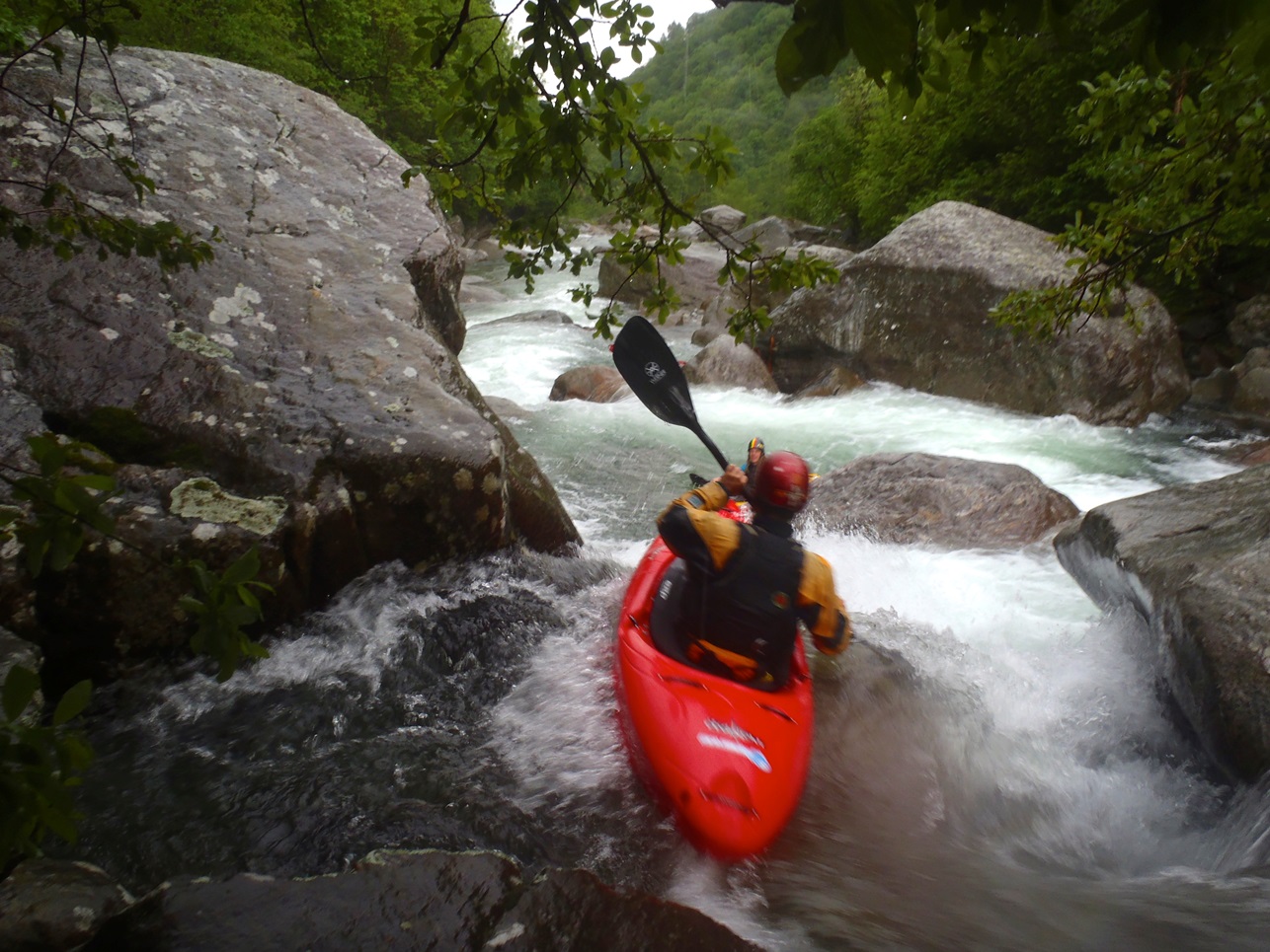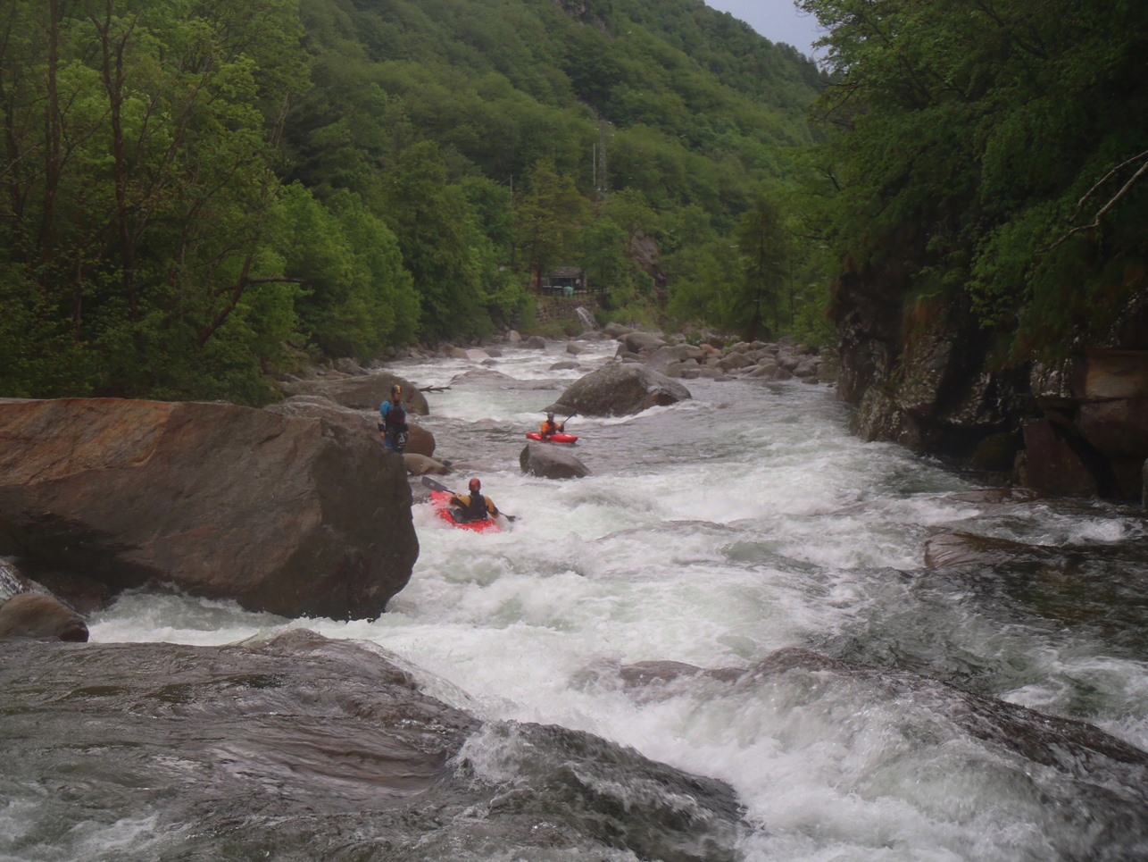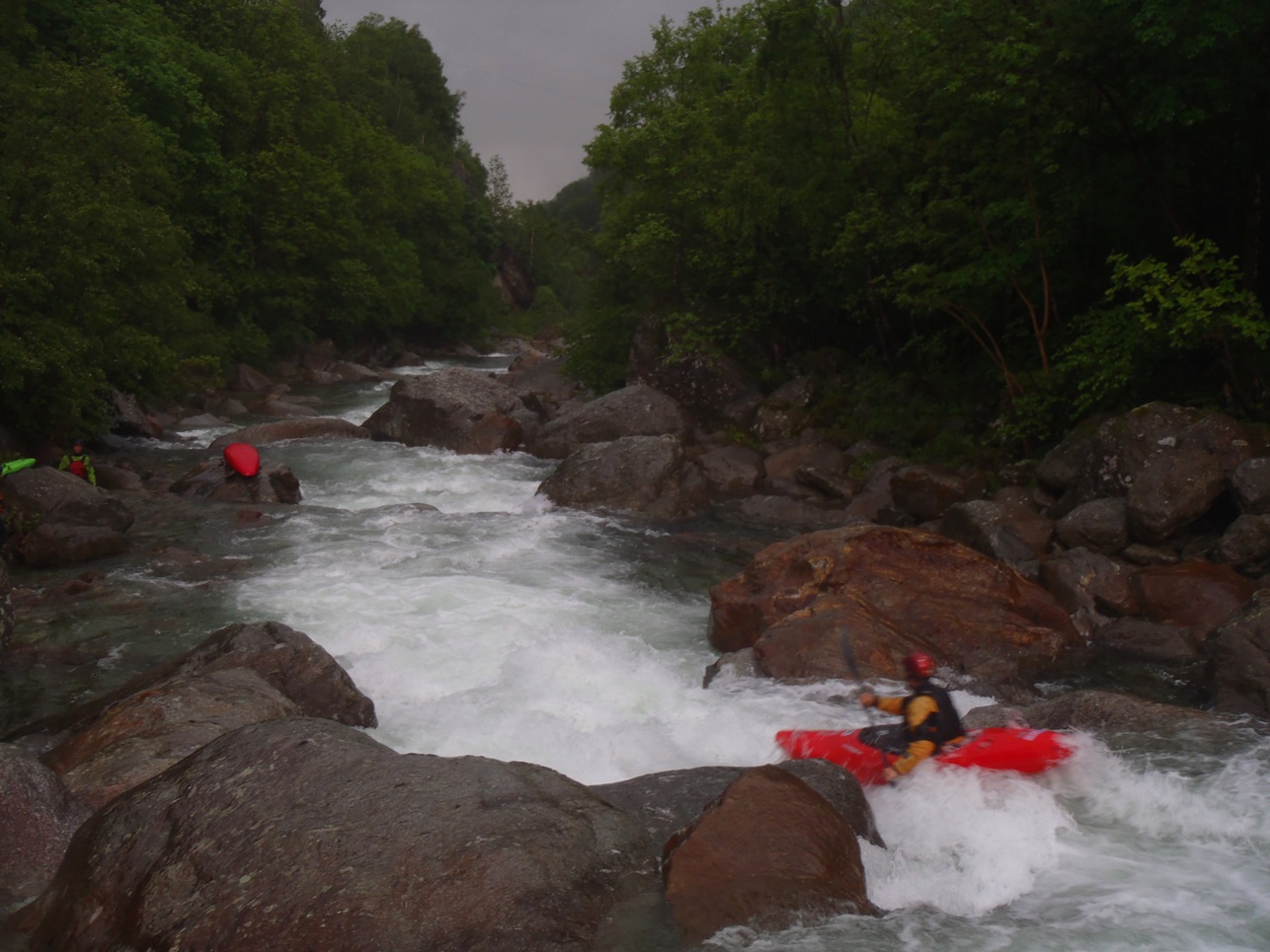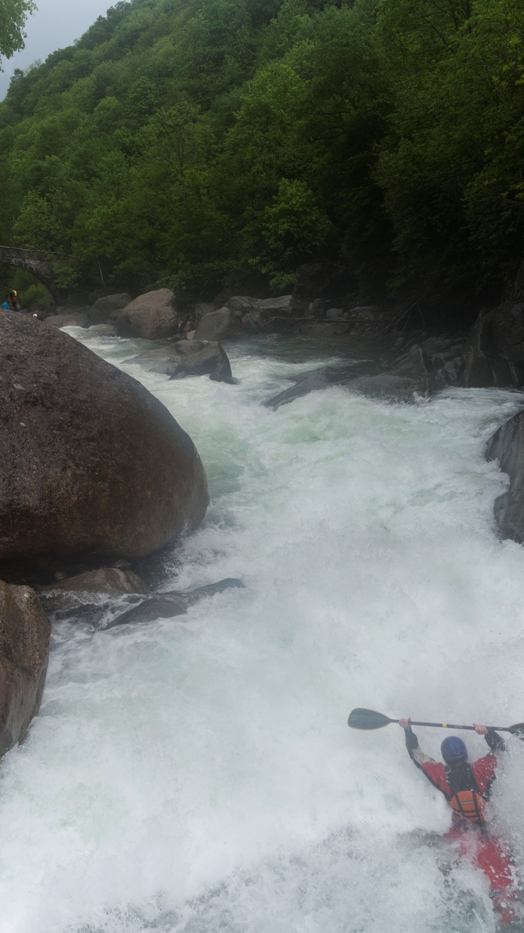 The run starts off which some very nice bedrock. 20 feet below put in is a large drop that goes much better than it looks. The bedrock quickly changes to boulder gardens once you pass under the road bridge. Most of the group portaged one particularly congested rapid early on. Near the normal take out is a large slide with a tricky hole and pocket eddy to avoid. Downstream the boulder gardens ratchet up a step. Getting steeper, harder, and more consequential. I feel that this section of river is the hardest that we did on our trip. Steep drops with powerful holes in and amongst sieves. Halfway through this lower section we once again portaged a junky rapid that had no clean lines. Below, the river let up to class IV+ and ended with one super nice boof. Take out was at a camp that is expensive to stay at, but if you are in need of a shower they are only 1 Euro. 3 members of the team decided to continue down to Traversella and reported less portaging and overall easier whitewater. From the road on the drive in, this section did not look overall that inspiring... but they said it was fun.
