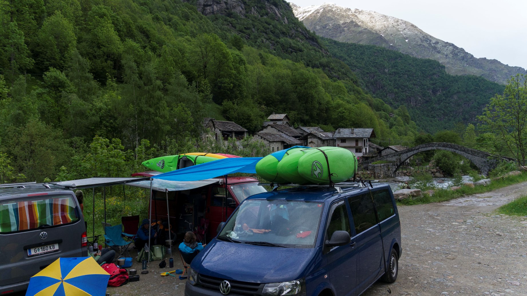 That night we camped up in Fondo at the uppermost put-in for the Chiusella. There is a small dirt lot and even a small restaurant. The latter being quite surprising as Fondo strikes me as a forgotten village that I wouldn't be surprised if it were abandoned 100 years ago. But alas, folks still live there. Sadly, our 11 team members that night were too many for the restaurant to serve so instead we drank our 1 Euro wine and cook gnocchi ourselves.