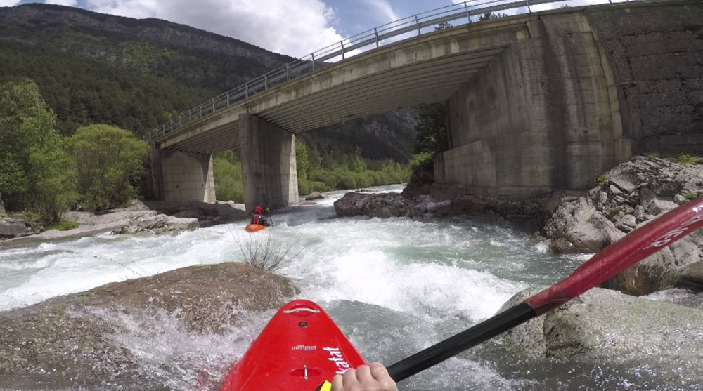 - Bridge #2 (IV-). Under the next bridge was a fun rapid. We boofed in on the right and then joined the main current for a mellow s-turn.