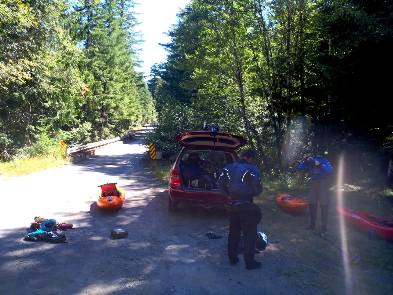 Take-out: We came up highway 141 from White Salmon to Trout Lake where we got on road 23 and stayed on it all the way until it crossed the river. Super pleasant drive, though some 20 of it was on dirt road that got wash boarded at times. Most folks will approach from Randle on highway 12. In Randle, take Highway 131 south for 1 mile before turning on road 23. Follow 18 miles to the bridge over the river.