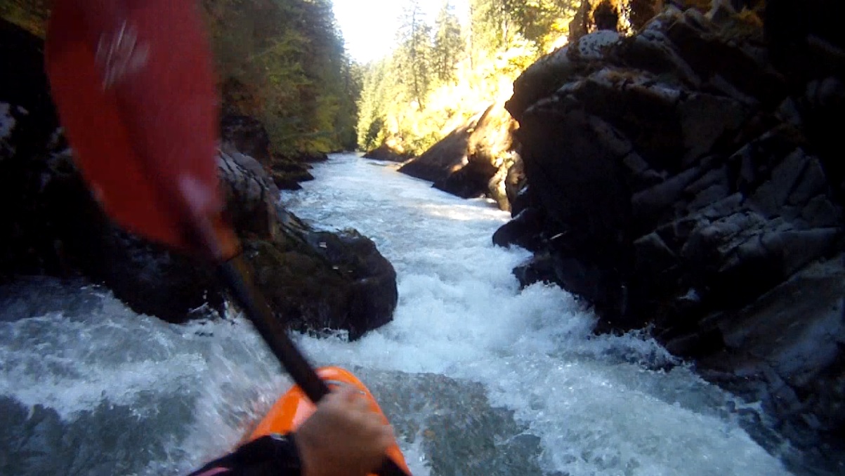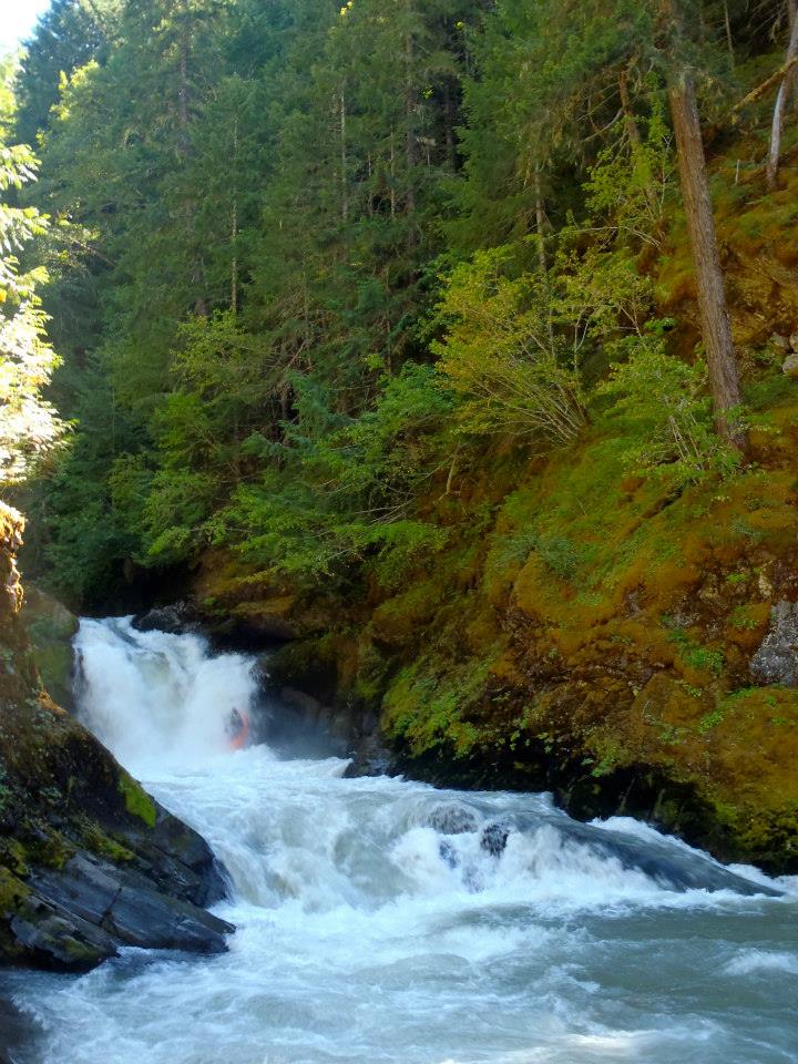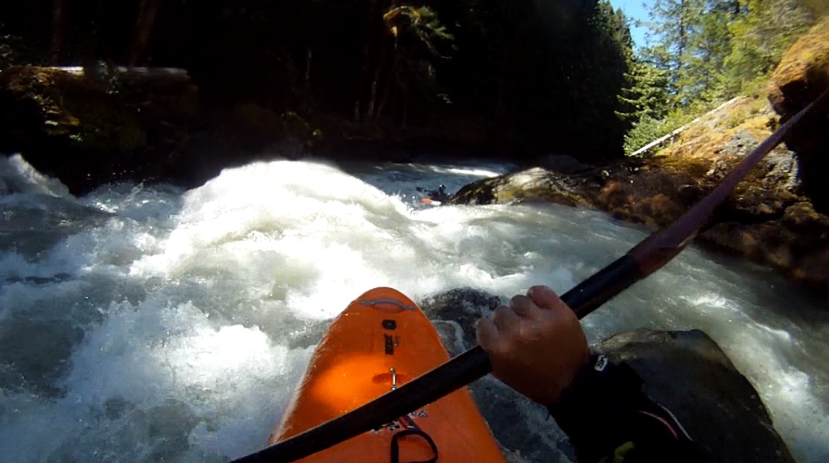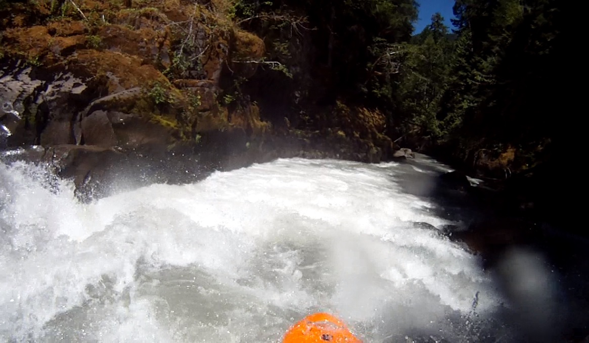 - First Falls (IV+). Around the first corner, hop out on the left to scout the first falls. We ran down the far right of the falls. It was more of a non-vertical falls then a free fall and stood about 10 feet tall. Immediately below is a junky run out that we ran down the far left.