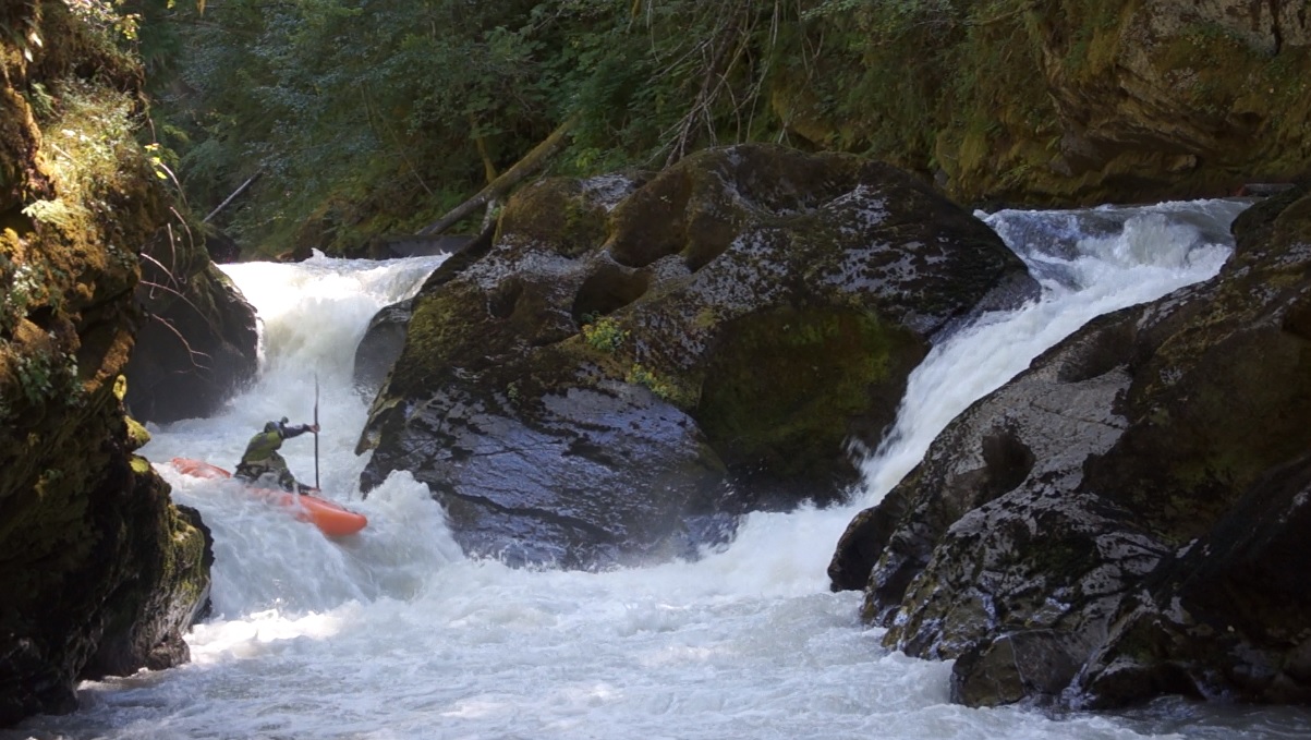 - Sweet Boof (IV+). The first rapid that signaled getting to the good section was on a right bend. The top was a boulder choke. I recognized it from above, but a log blocked the boat scout eddy. We ended up bashing our way down the far left before exiting over the sweet boof on the left. There was also apparently a clean line in the middle at the top.