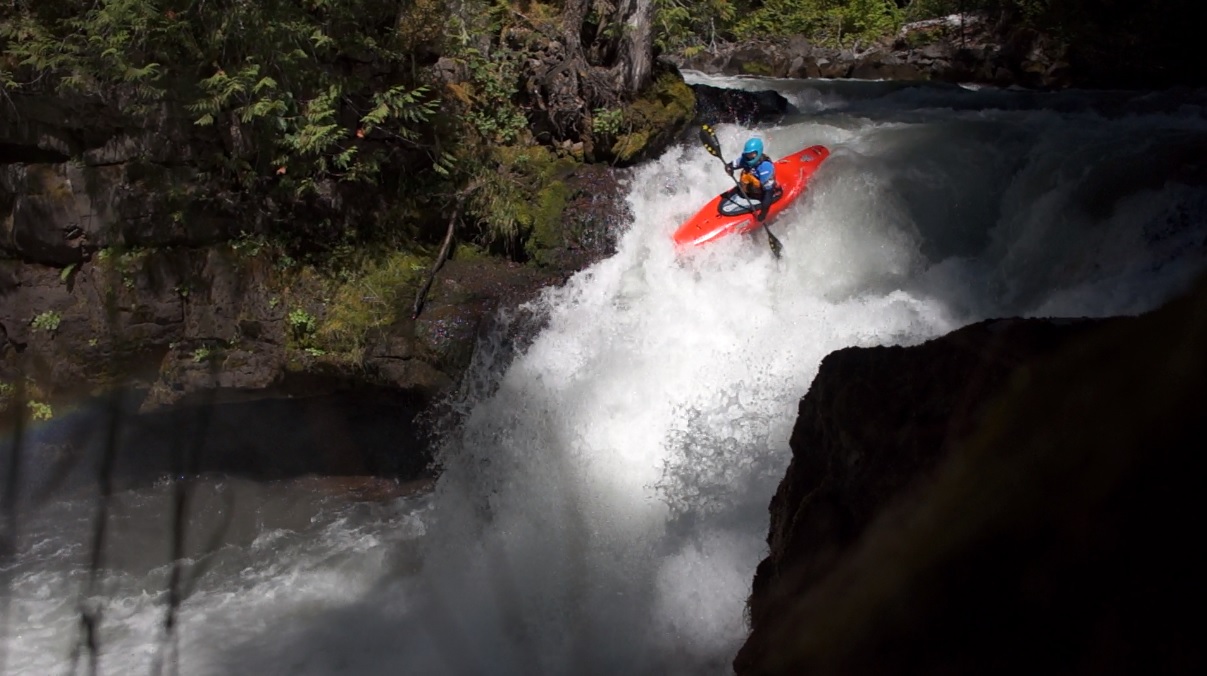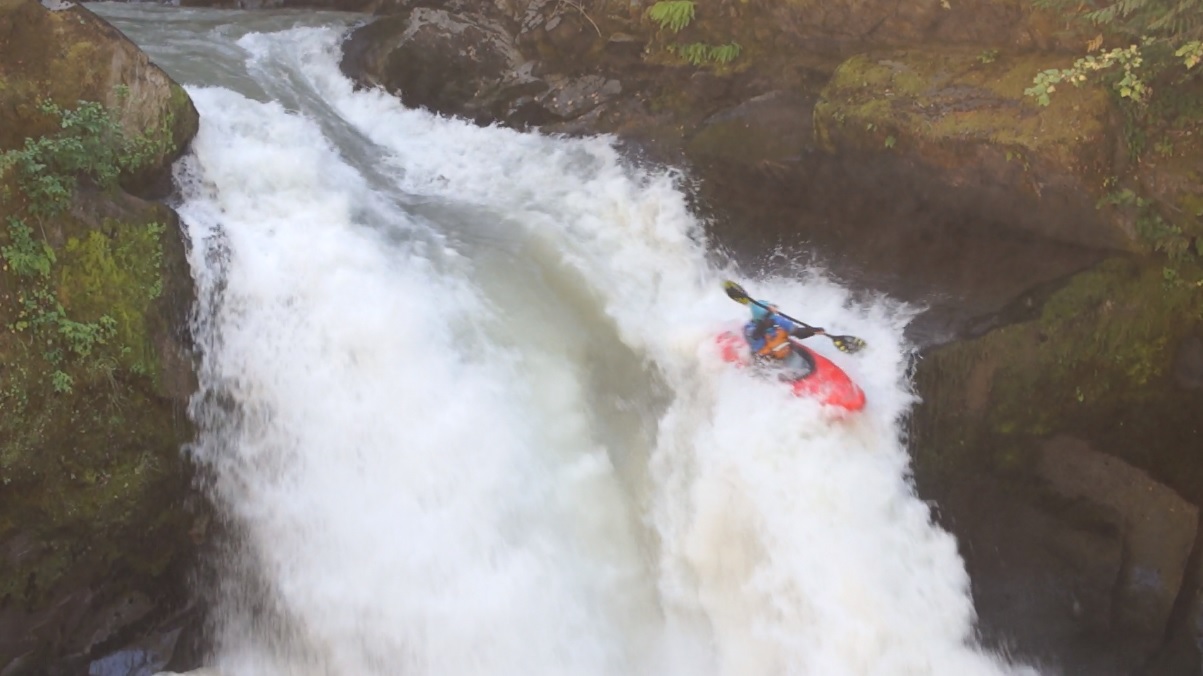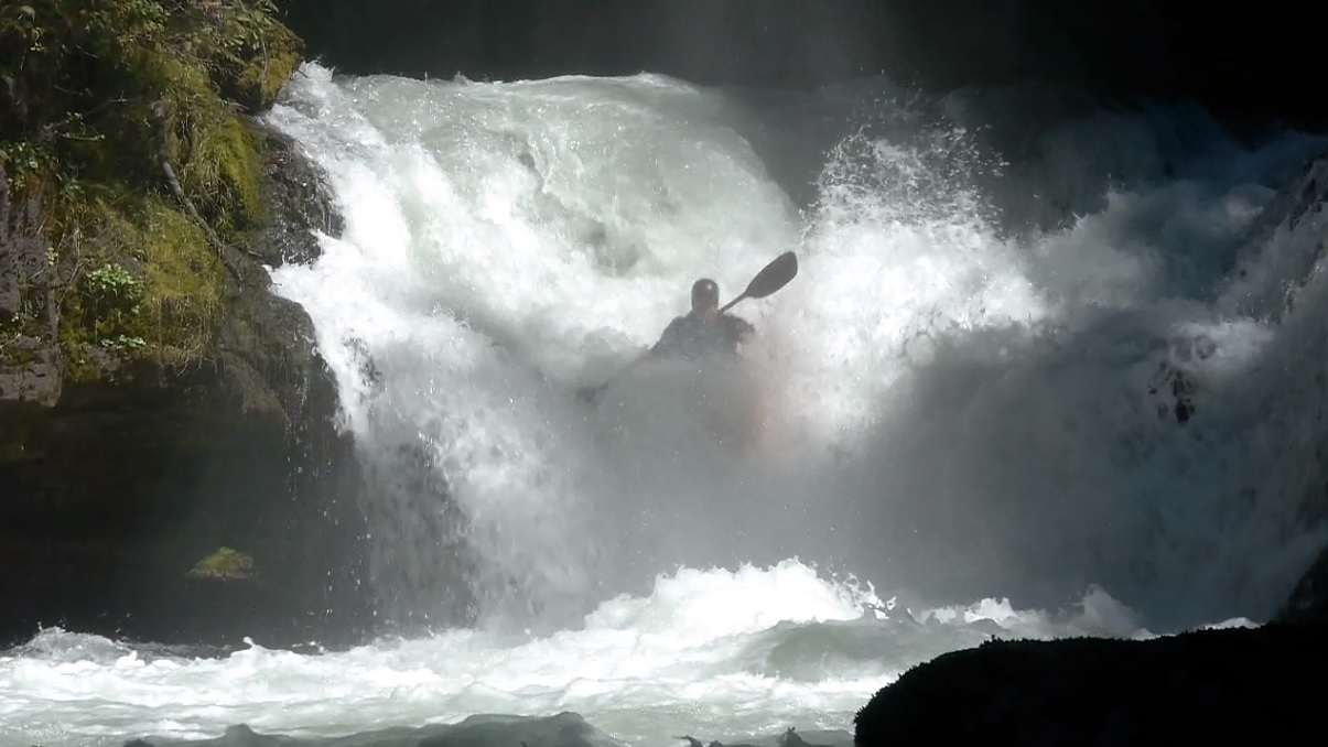 Behemoth (V). Plenty of photo and video of this one. The move is to drive center to left down the top slidey part before boofing the ledge. The drop is about 30 feet tall in total but only have is free fall, if even. The danger of this drop is that if you over drive and boof left you can eddy out and be pulled behind the falls. This has happened plenty of times and causes epics but to date folks have been ok. The second hazard is that the hole just below is rather large, especially on the right. Ideally you want to exit on the far left. However, folks worry about the bottom hole and drive harder left and end up behind the falls. So, be careful, scout your line... and hedge your bet for the bottom hole... safety is easier to set down there and a rescue is less scary.
