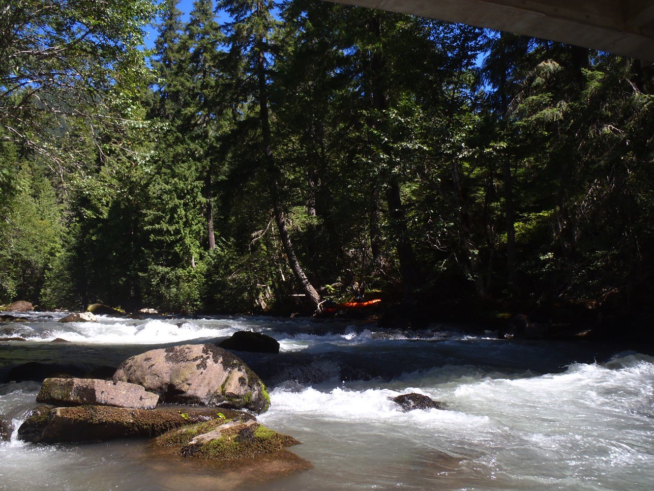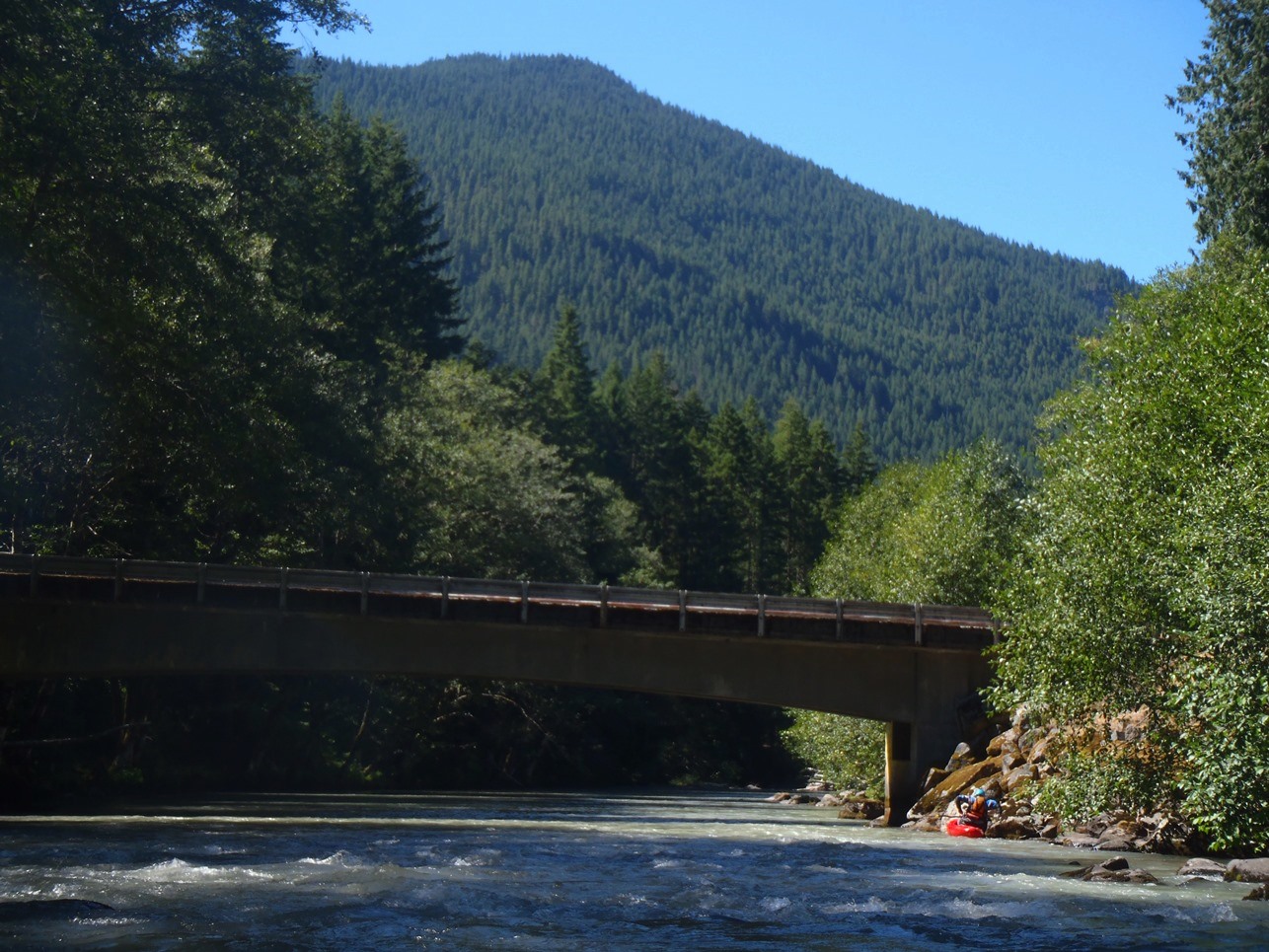 Put-in. A few hundred yards towards Randle (north) on road 23 is a right turn on road 21. Follow road 21 for 4.6 miles to road 56, turn right towards Adams Fork Campground. Park at the bridge. Good access on the far side, upstream side.