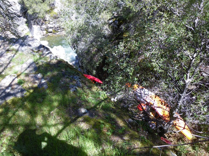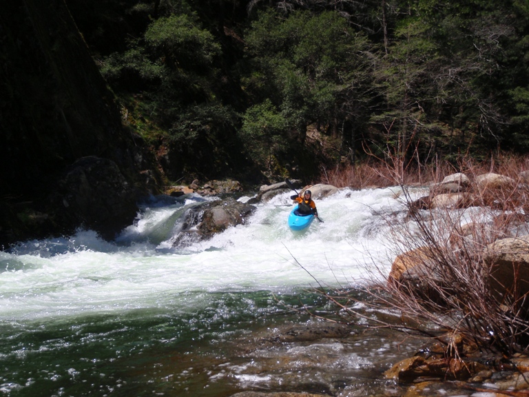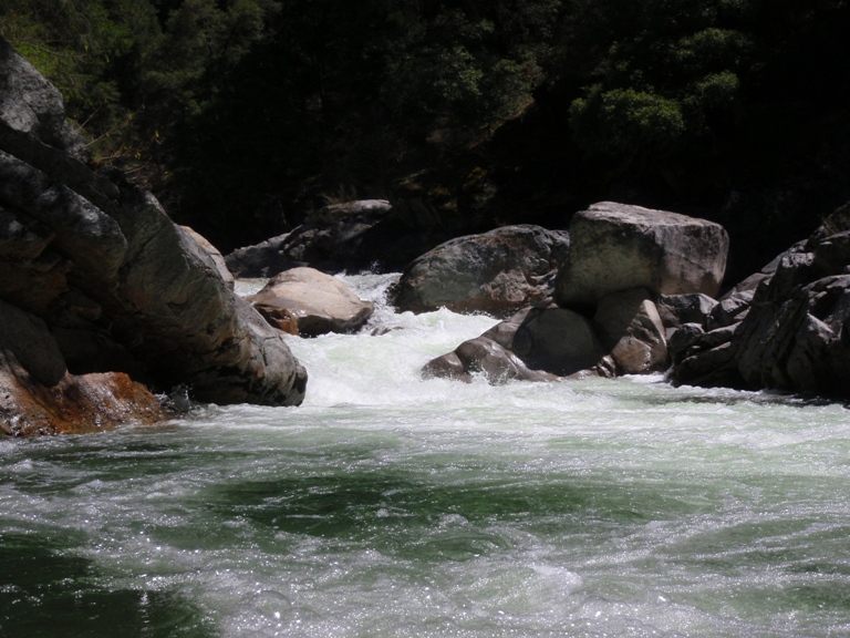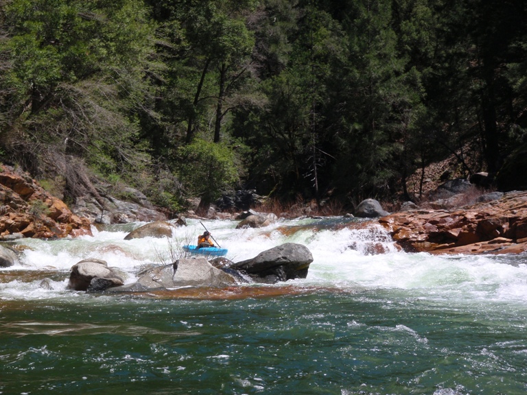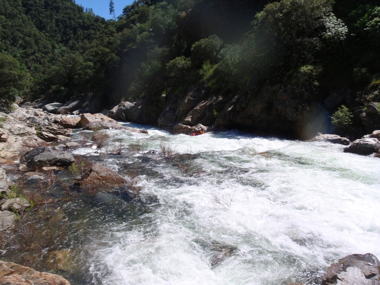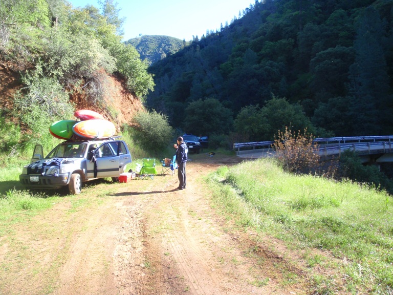 Take-out: Regardless from where you are coming in from, I would go via the put-in rather than direct to take-out. However, if you want to have some fun on dirt roads here is the way. 1) From the town of Tuolumne, take Buchannan Rd out of town towards Cherry Creek. After a mile or two you will see a bridge on the right that cross the North Fork of the Tuolumne. Take this road (1N01) for 5.6 miles and turn left on 2N11. Follow this road up a small valley with a house (suspected meth lab). On the other side of the small valley the road will turn back sharply to the left, stay on the main road. 2.1 miles after that sharp turn you will come to a 4 way intersection, on the right will be 1N49 which will rise steeply and is paved for 50 feet. In 2.9 miles you will get to another 4 way intersection, turn left on 1N01 again and follow this down to the river. It will be another 15 minutes or so of driving from that point. In all this method took 1.5 hours or so. Also, just to note, the CRV made it, though barely.