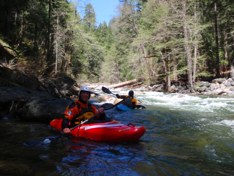 So to conclude. This run took us 3 hours to run which only included a handful of scouts, several of which were from the last minute eddy above the crux of the harder rapids. The scenery was really great and the rapids will leave you smiling. While the Stanley/Holbek write-up states that with "5 or 6 portages you can take the class V bite out of the river making it ok for any competent class IV boater," I think I would upgrade it to "any competent class IV+ boater" as the size of the holes and proximity of the next hole just seem too much in my mind for a class IV boater. I think now that this run has a gauge on it, and since the shuttle really isn't as bad as the legends have made it out to seem, that this run will begin to get a lot of attention. And it deserves it.