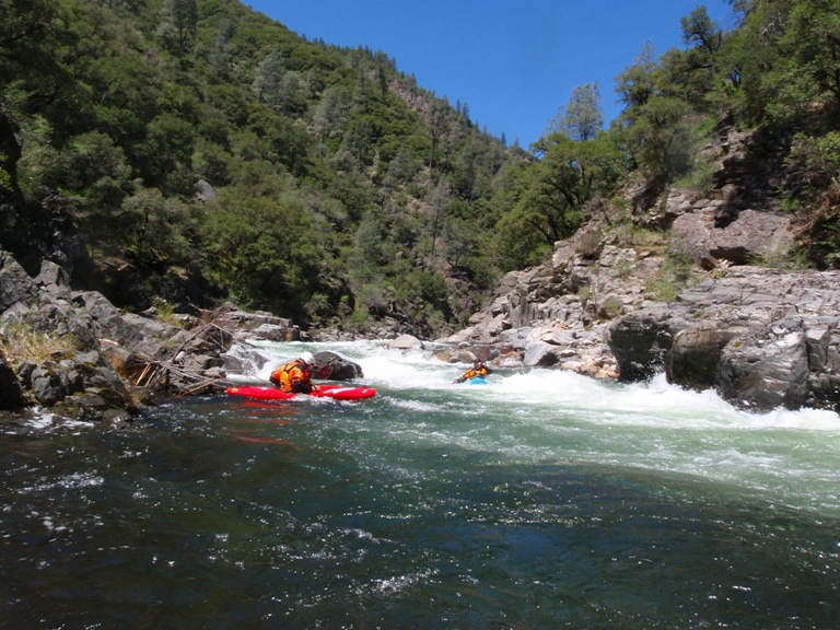 The other method for getting to takeout would from the town of Tuolumne, drive to put-in, and then drive to take-out. This way is much easier on the car and shorter as well. 2) From the town of Tuolumne take Buchannan street. Instead of crossing the North Fork of the Tuolumne at the first bridge as stated above, keep driving on the nicely paved 1N04. From there, just stay on the nicely paved 1N04 the whole 17 miles. Really quick drive of about a half hour. From there, cross the Clavey and drive another 3.6 miles. Just after Reed Creek take a right on the paved road 3N01 (look at a map if you want to come in from Groveland, this is where you pop out from the Cherry Creek put-in road). After 5.0 miles turn right on the gravel/less paved 1N08 road. After 1.6 miles take a slight right on 1N01. I think it was at this time the road turned to dirt. Stay on this road for 7 miles until you drop down to the bridge over the river. The best river access in on the river left where a small trail leads up.