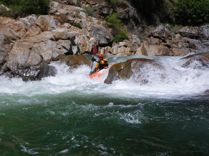 Boof Section #2 (IV+ to V). Another section of boofs. The largest set was a double drop which appeared to have a tongue down both drops. Instead the first tongue just subbed you deep into a seam flushing each of us down the second tongue in huge stern skirts.