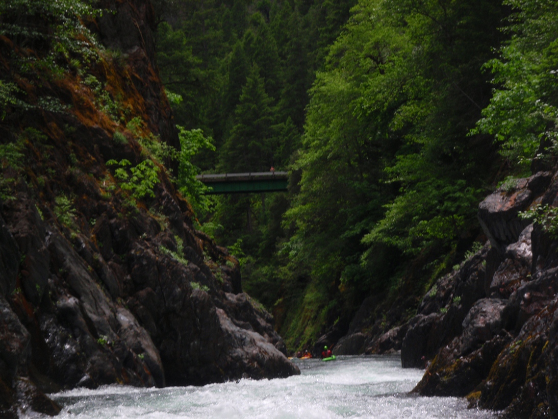 - Put-in (III). Some people choose to put-in as soon as the trail is at river level. We carried another 100 yards to a cool class III rapid that leads to a walled in flat water gorge just below the first bridge.