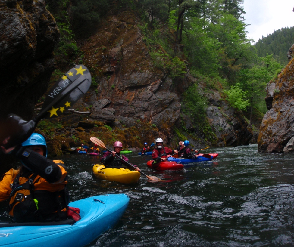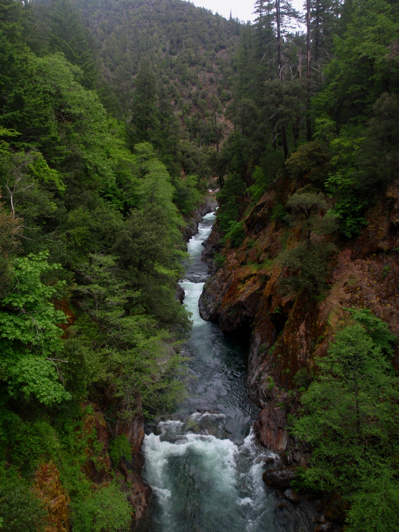 Take-out: 7.5 miles west on Highway 96 from Happy Camp turn right on the road that I believe was marked as Clear Creek Rd (or FR-16N10 on the maps). If you cross Clear Creek on Highway 96, go back and take the first turn that you passed. Follow the signs towards the Clear Creek Trailhead. After 6 miles you will see a river access sign for Slipper View. This is take-out. It is recommended that you walk down to the water to scope out the take-out as it is easy to miss.