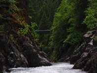 When not preoccupied with the rapids, take time to look above and below you. Unlike many other "Clear Creeks," this creek actually is crystal clear. Amazingly so. You could easily see 20 feet to the bottom of the deepest of the pools. And towering above you were steep forested walls at times locking you in completely. Hiking out of this run, although you are never far from the road would still be incredibly difficult.