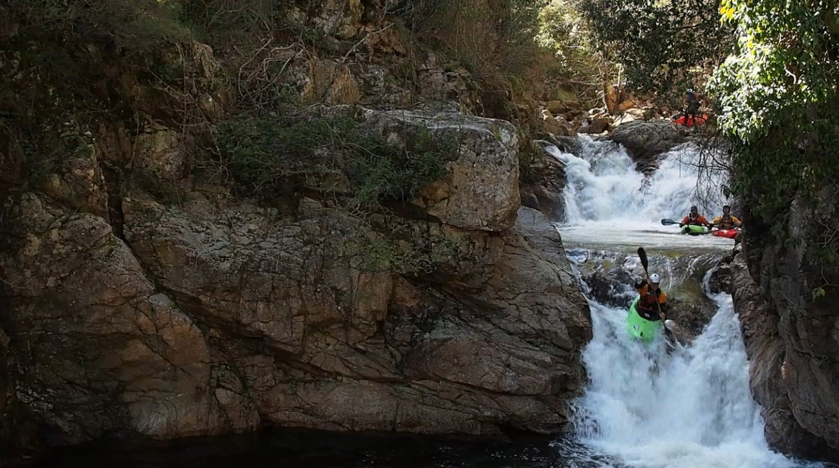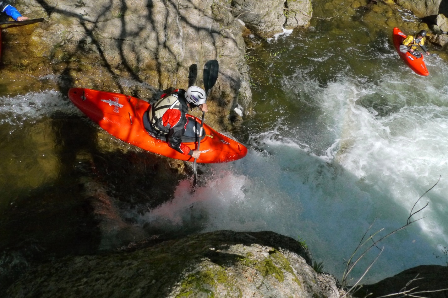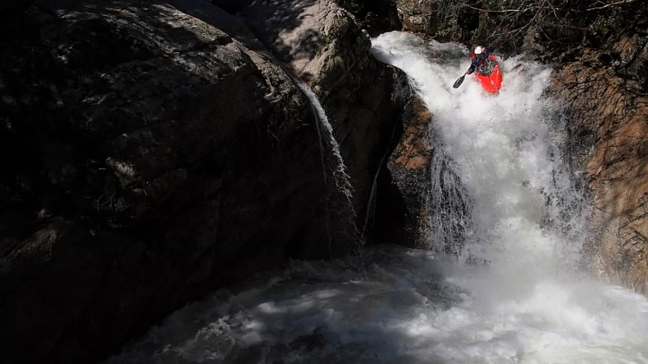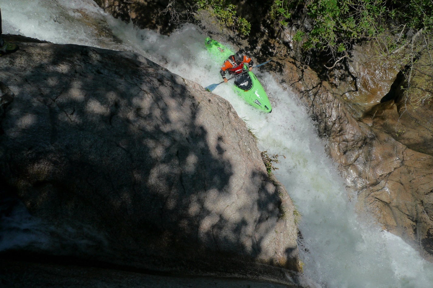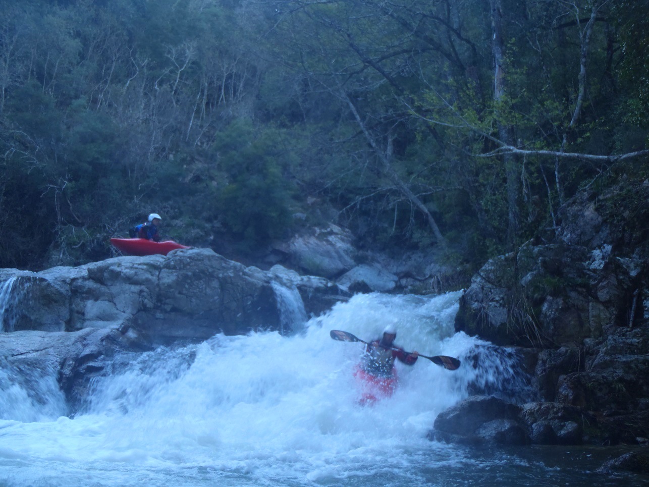 The Big Falls (V). A couple of small junky rapids lead to the pool above the Big Falls. Scout right. The falls starts with a slide to the left before sliding down into a free fall. Maybe 25 feet tall total. The landing is in a small pocket that exits into an undercut on the right. The better you boof the falls, the more likely you are to have to push your way off the undercut.